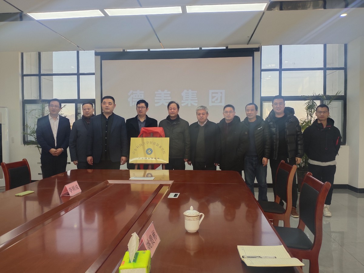 2022年1月13日山東科技大學智能裝備學院授牌泰安德美機電設備有限公司“產(chǎn)學研合作基地”