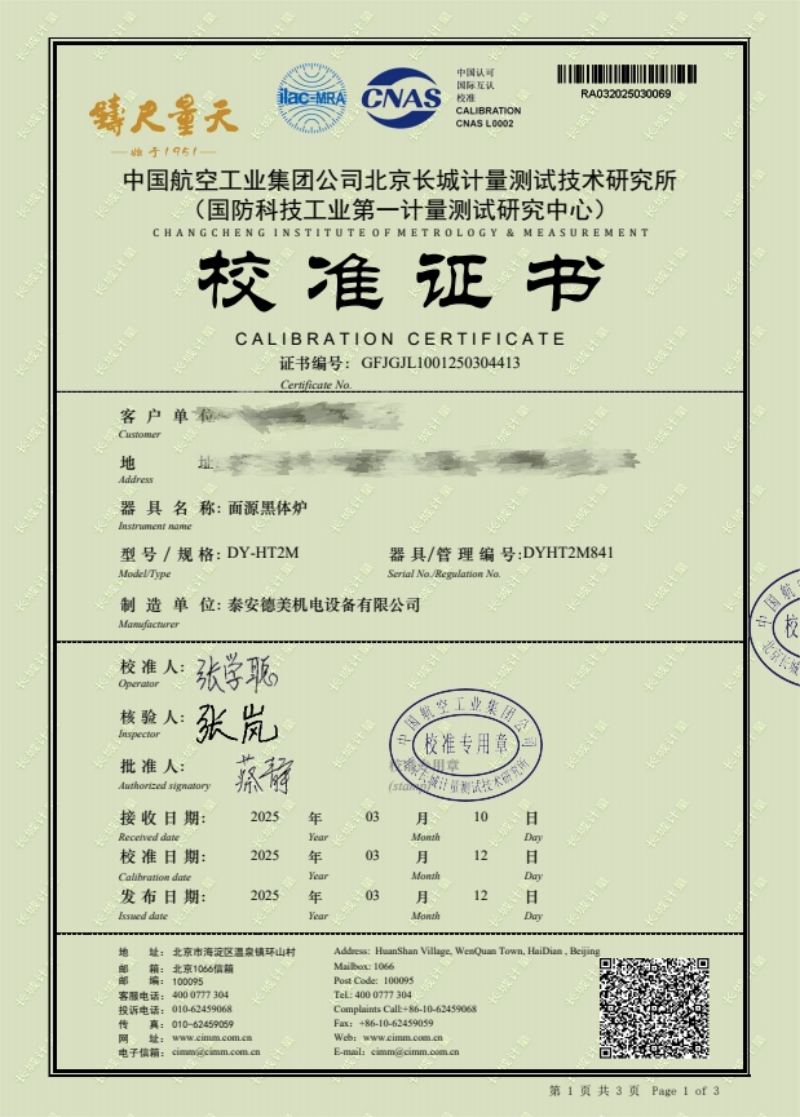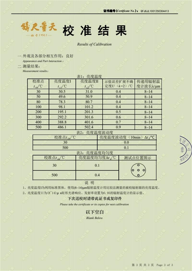 上一條:貴金屬熱電偶檢定爐(300-1200℃)校準(zhǔn)證書 | 下一條:超低溫面源黑體爐(-40-80℃)校準(zhǔn)證書 |