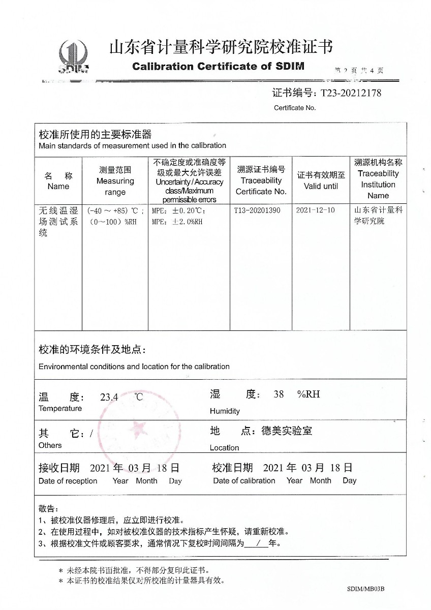 | 上一條:山東仁科測(cè)控技術(shù)有限公司-制冷恒溫槽 | 下一條:溫濕度檢定箱(-5~65℃)校準(zhǔn)證書(shū) |