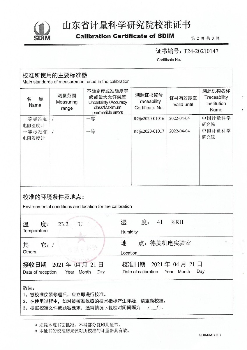| 上一條:方圓廣電檢驗(yàn)檢測(cè)股份有限公司-便攜式黑體爐 | 下一條:溫濕度檢定箱(-5~65℃)校準(zhǔn)證書(shū) |