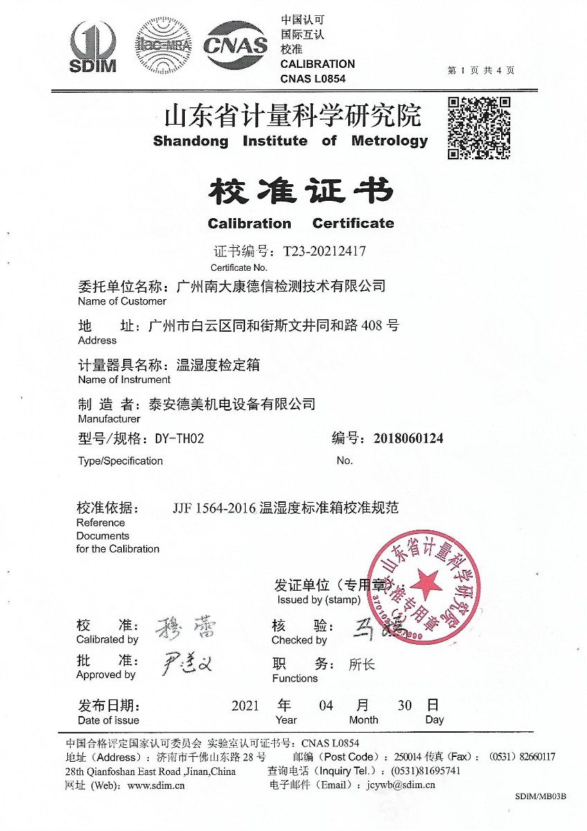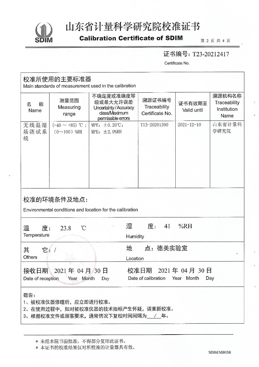| 上一條:山東華源工程設(shè)備安裝有限公司-干體溫度校驗(yàn)爐 | 下一條:便攜式溫濕度檢定箱(-10-60℃)校準(zhǔn)證書(shū) |