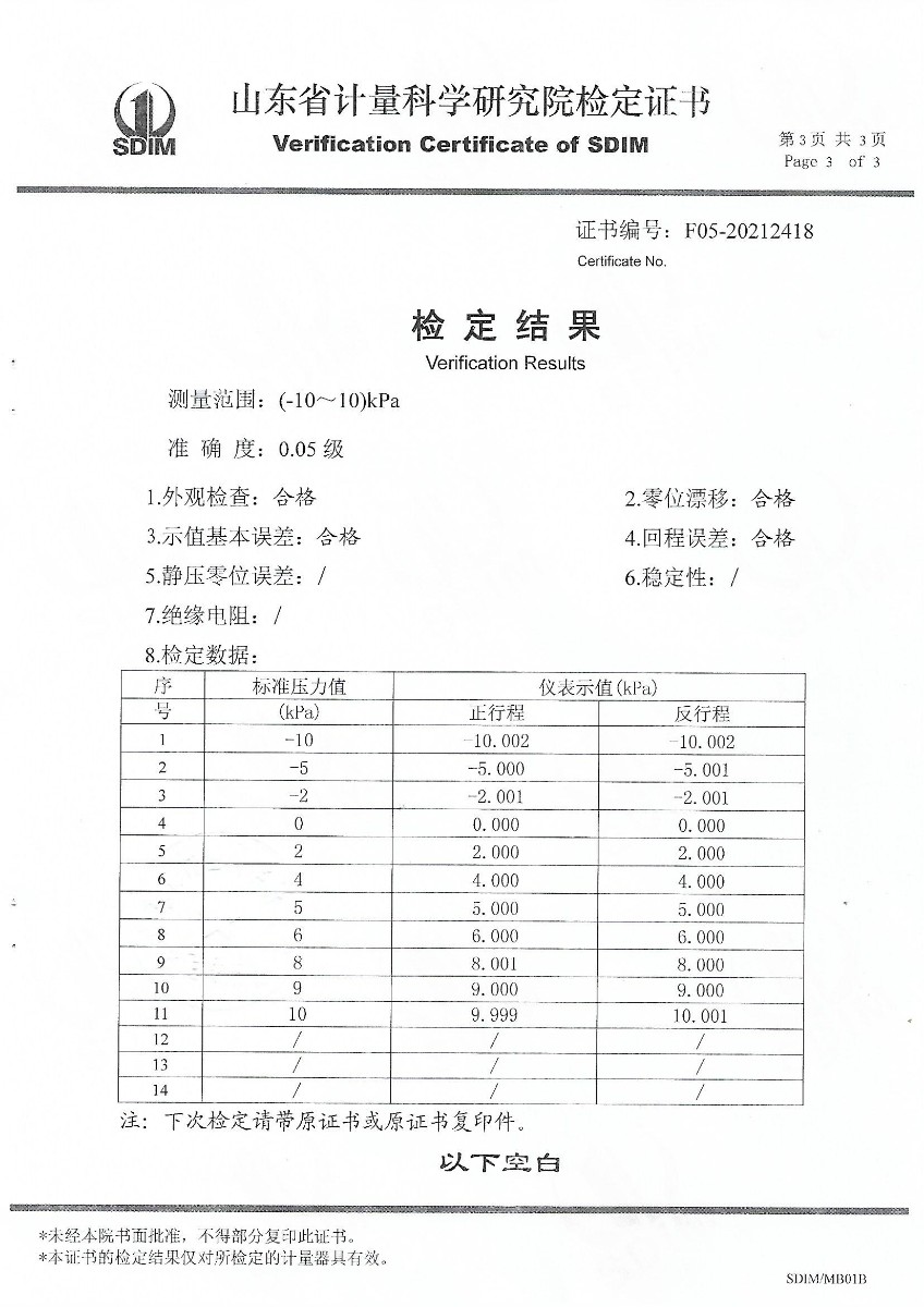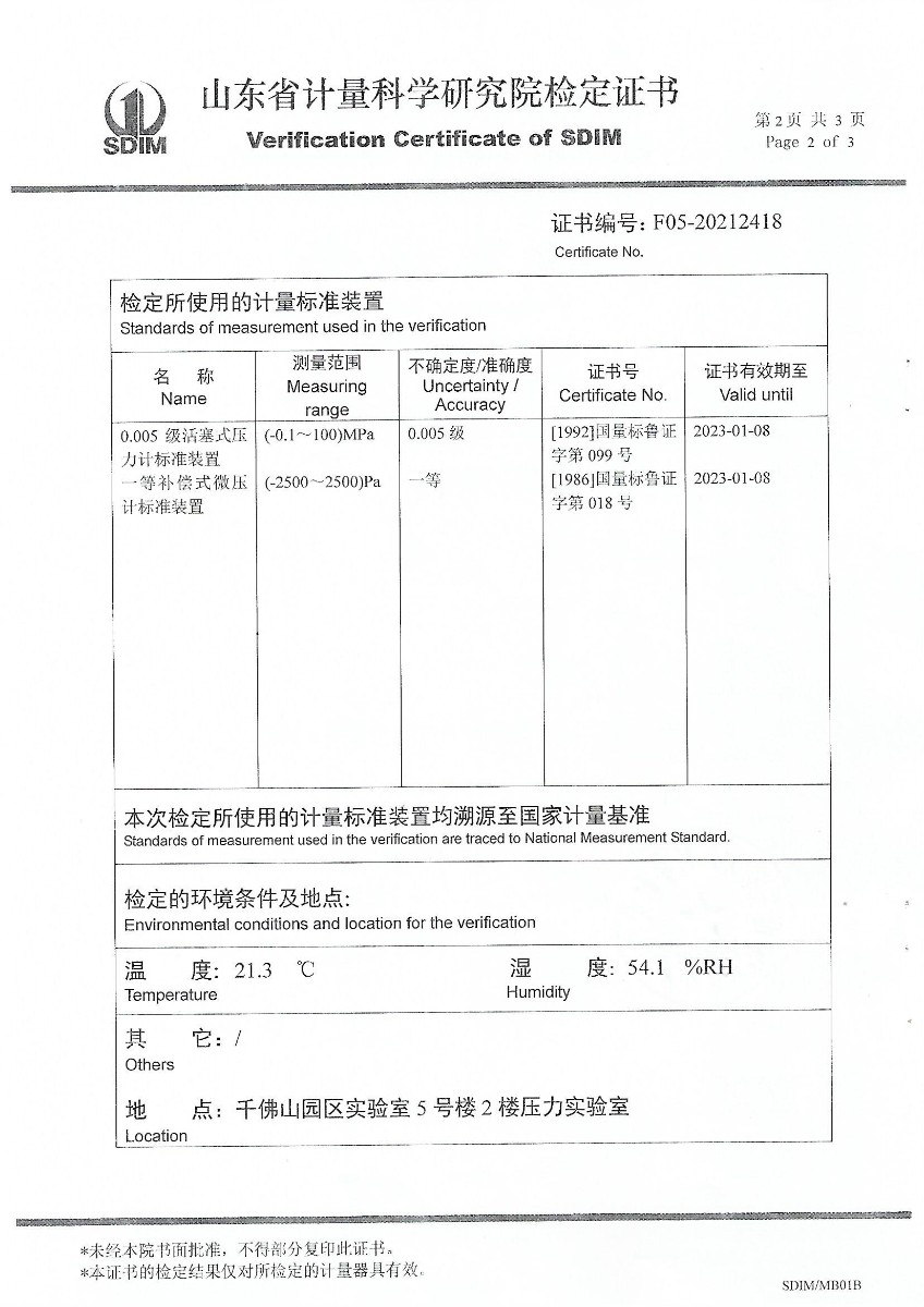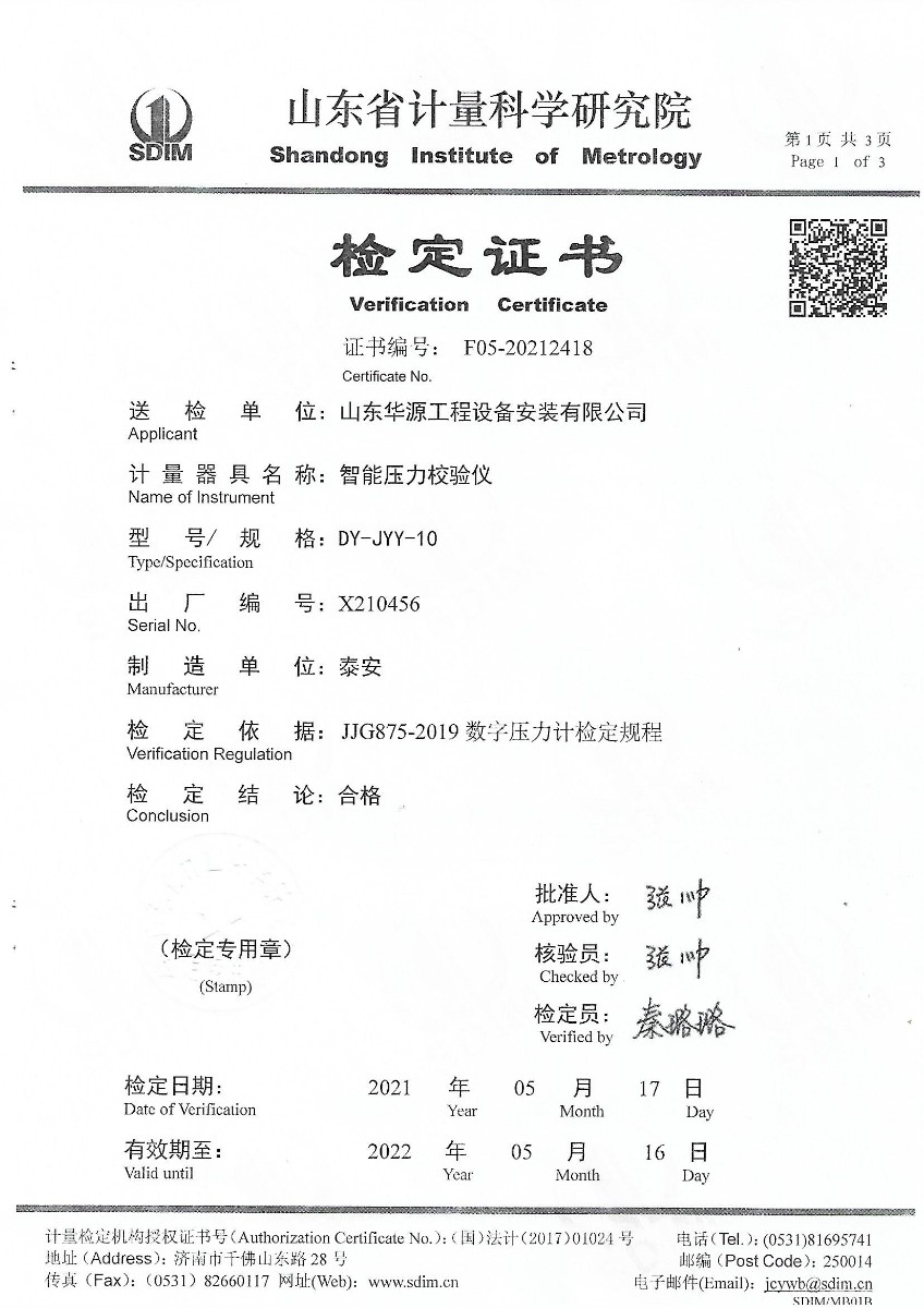 | 上一條:山東華源工程設(shè)備安裝有限公司-智能壓力校驗儀X210455 | 下一條:便攜式干體爐(-30-150℃)校準(zhǔn)證書 |