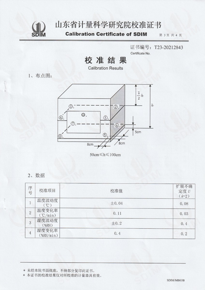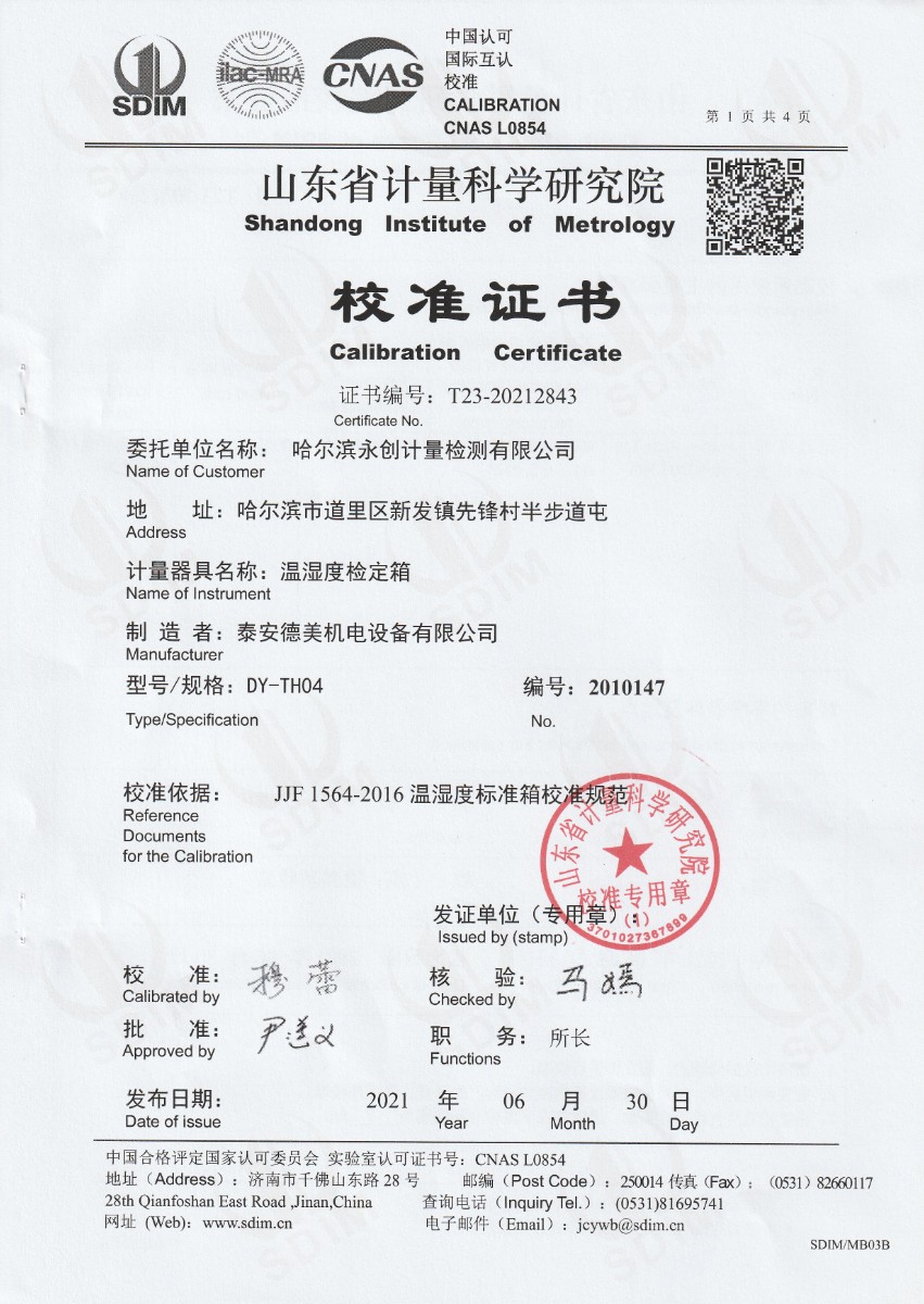 上一條:廣東省連平縣質(zhì)量技術(shù)監(jiān)督檢測所-溫濕度檢定箱 | 下一條:便攜式干體爐(-30-150℃)校準(zhǔn)證書 |