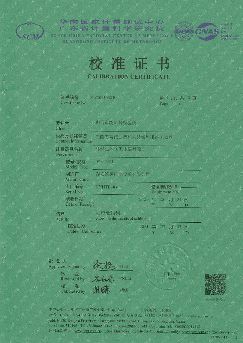 上一條:廣東省連平縣質(zhì)量技術(shù)監(jiān)督檢測所數(shù)字式溫度計(jì) | 下一條:便攜式干體爐(-30-150℃)校準(zhǔn)證書 |