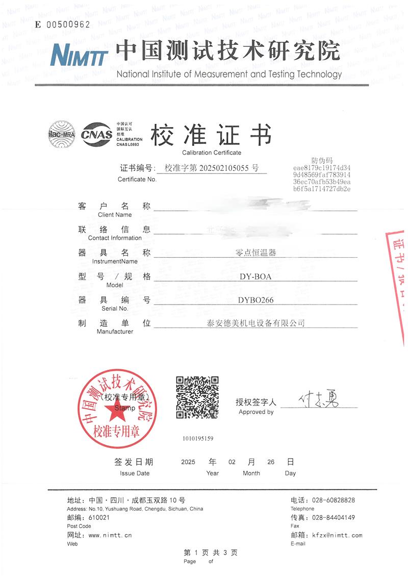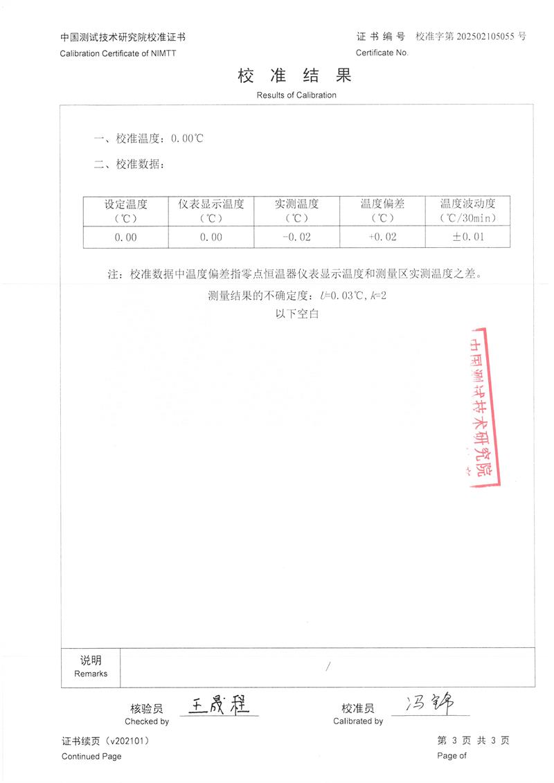 零點(diǎn)恒溫器校準(zhǔn)證書 2025-3-1 本文被閱讀 5020 次