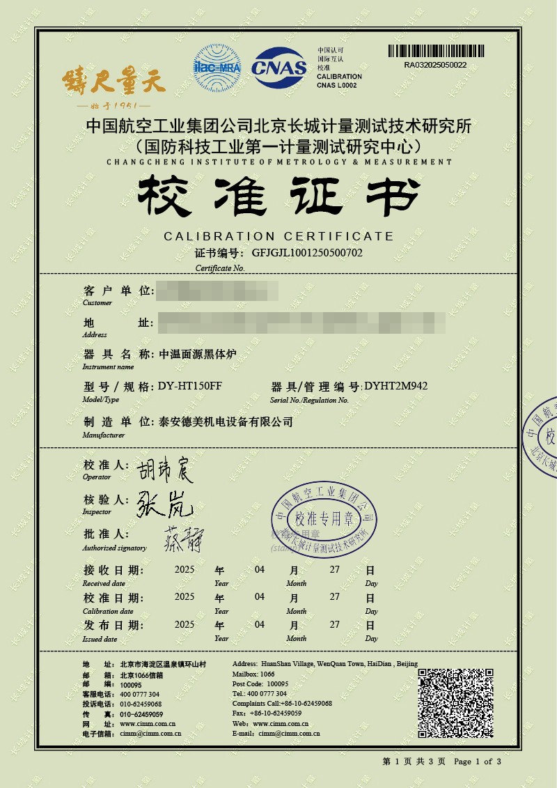 上一條:腔式黑體輻射源(-50-100℃)校準(zhǔn)證書 | 下一條:超低溫面源黑體爐(-40-80℃)校準(zhǔn)證書 |