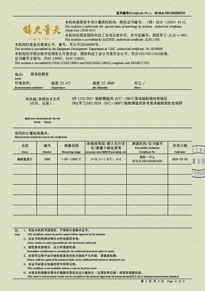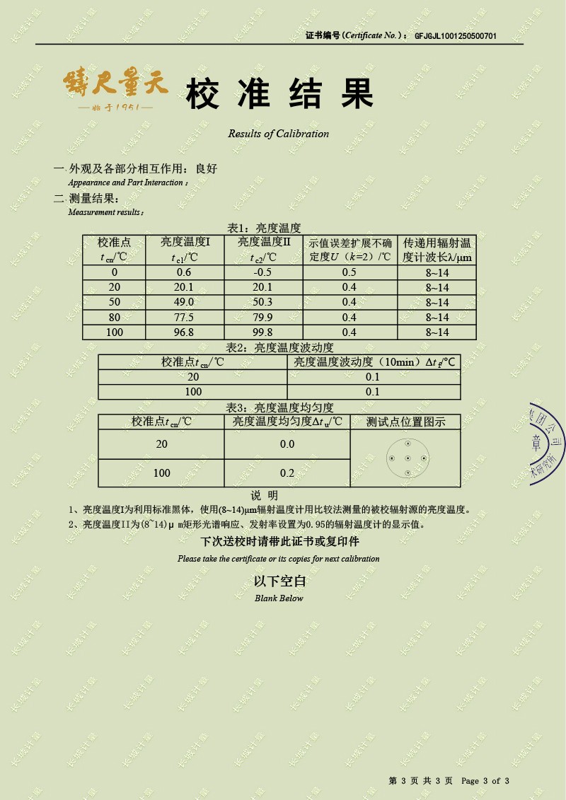 差分黑體爐(0-100℃)校準(zhǔn)證書 2025-5-9 本文被閱讀 2772 次