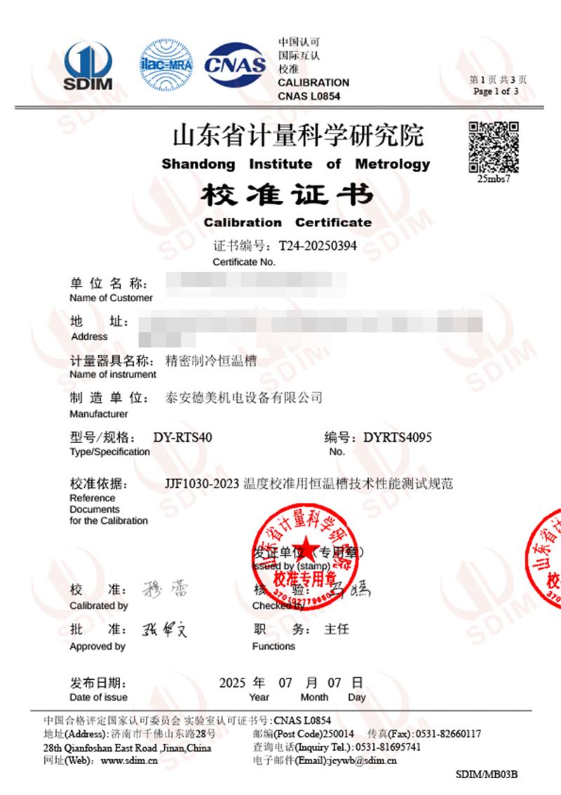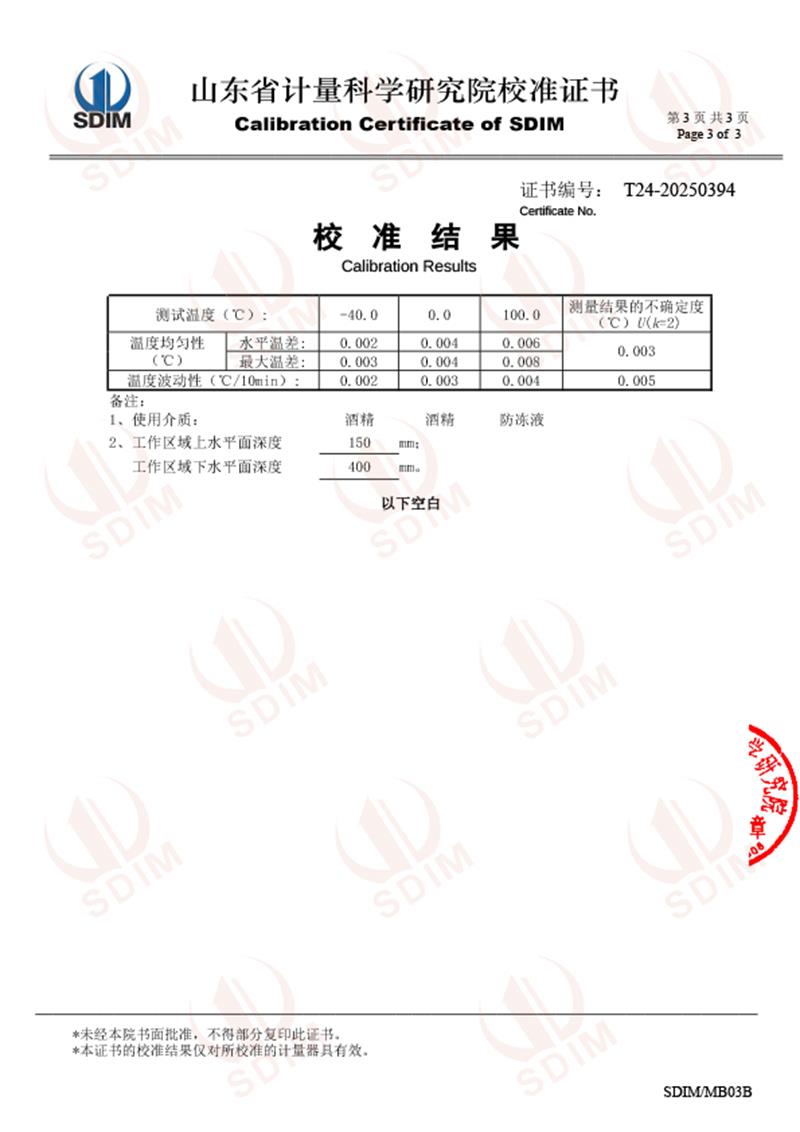 制冷恒溫槽(-40-100℃)校準證書 2025-7-10 本文被閱讀 2221 次