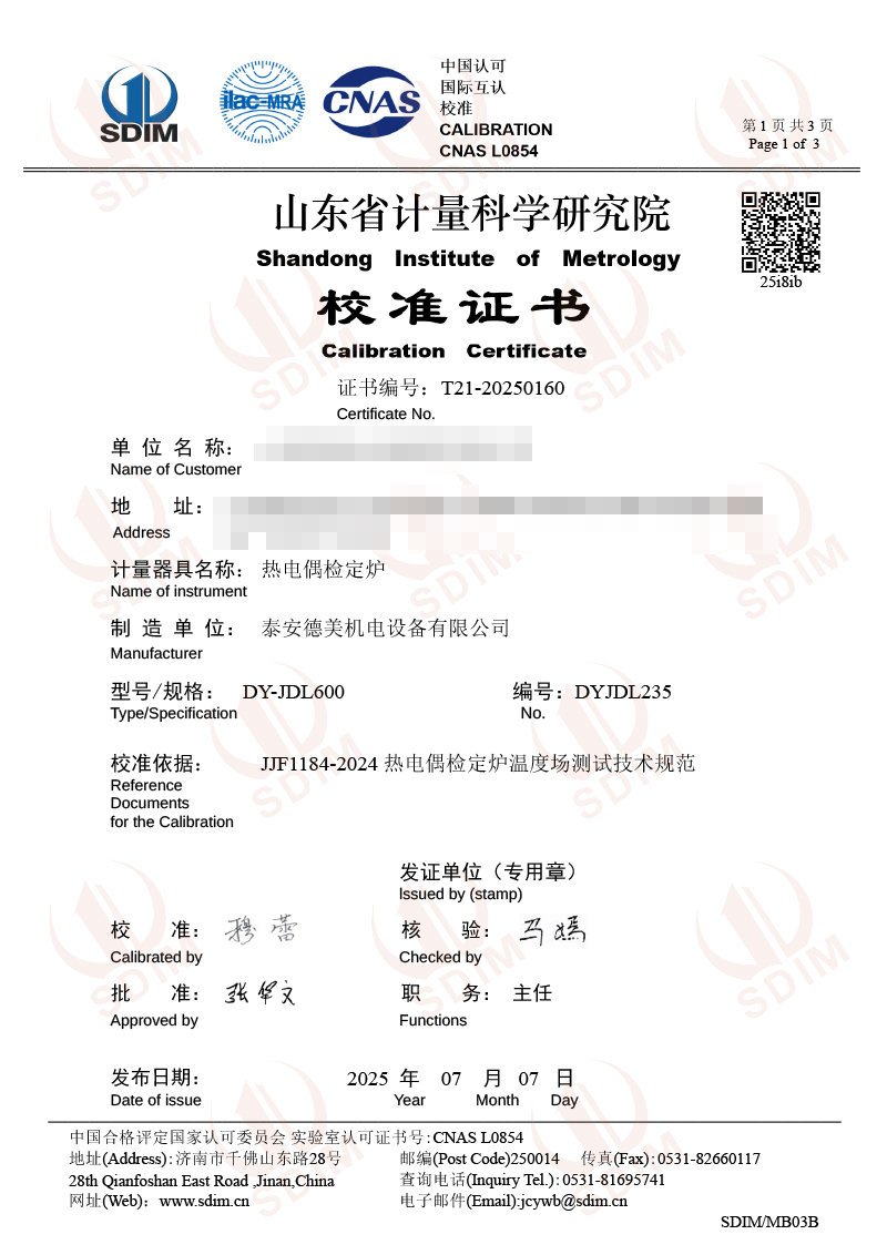 熱電偶檢定爐(300-1200℃)校準(zhǔn)證書 2025-7-10 本文被閱讀 2469 次