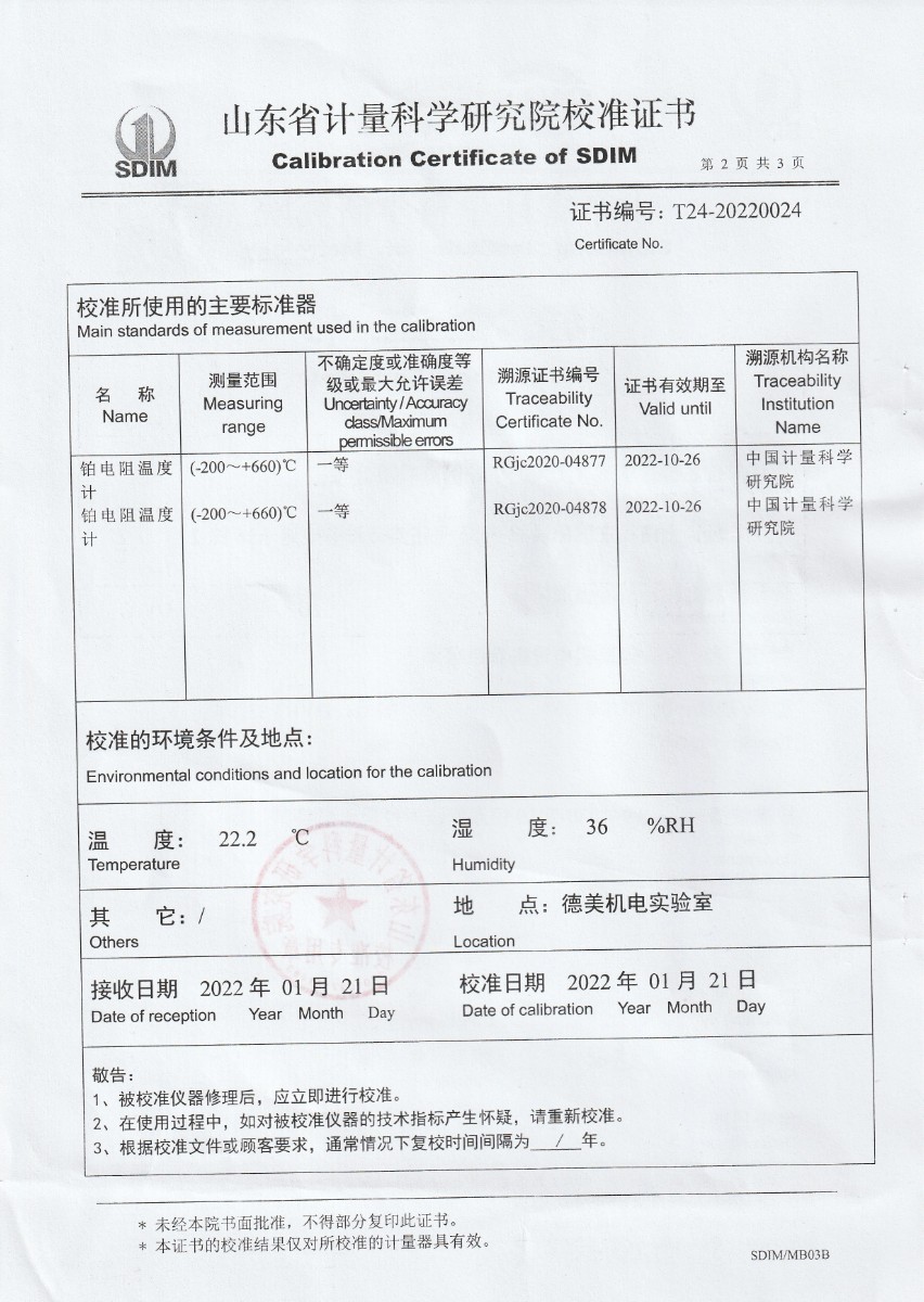 上一條:成都潔定醫(yī)療檢測(cè)技術(shù)-耳溫黑體空腔 | 下一條:超低溫面源黑體爐(-40-80℃)校準(zhǔn)證書 |