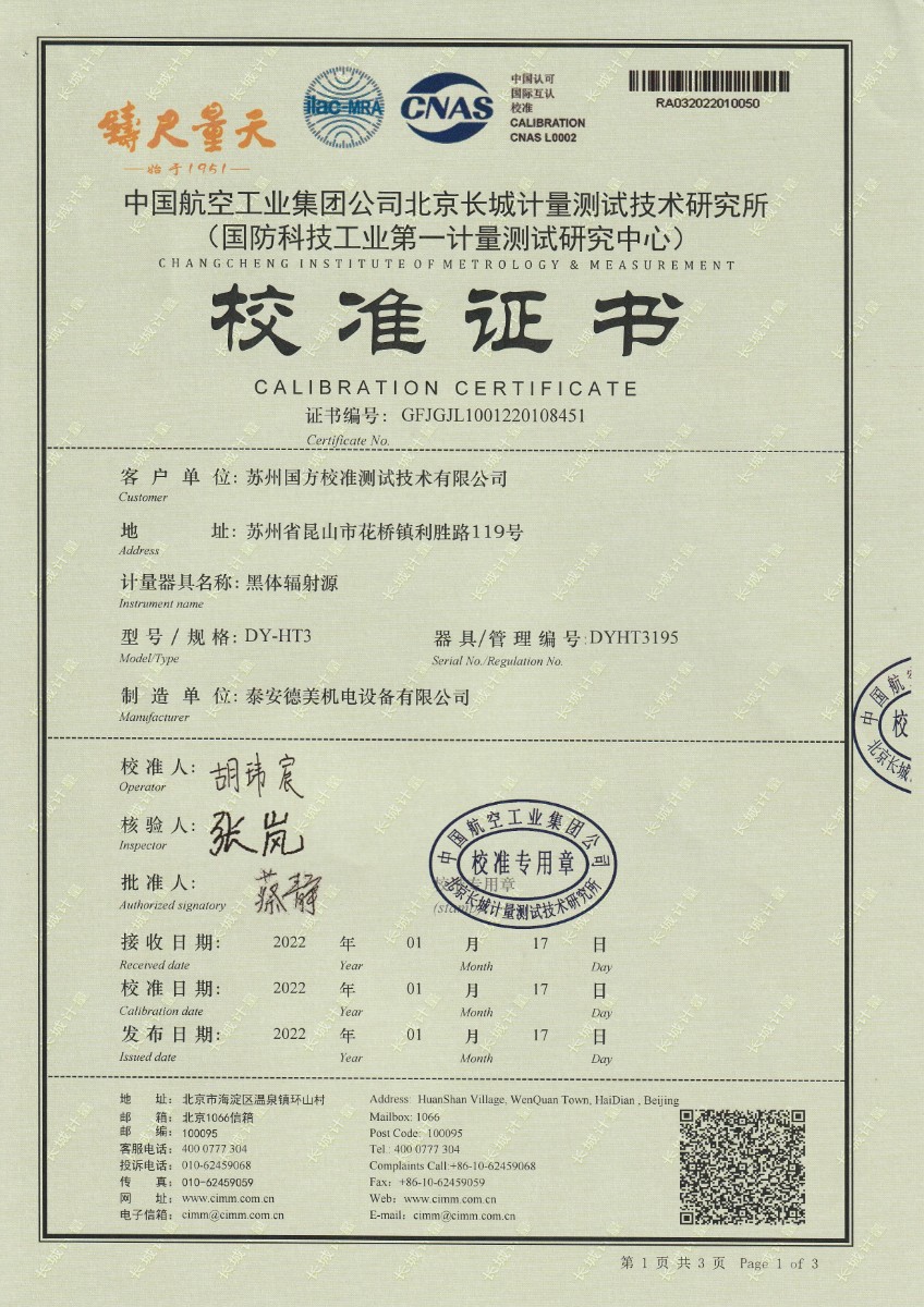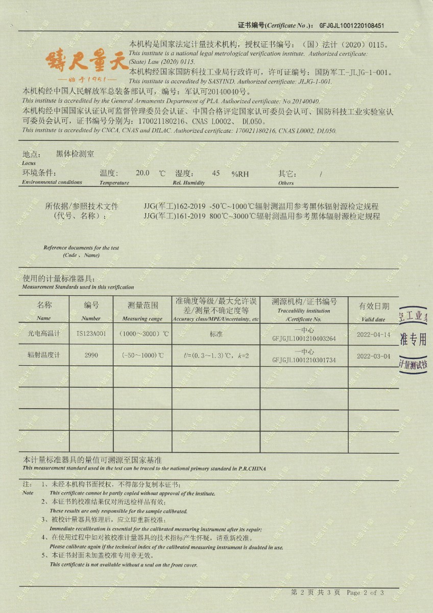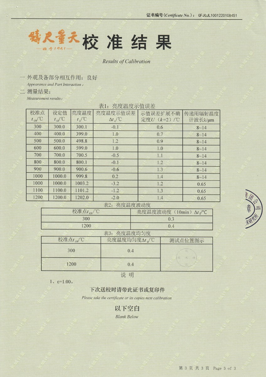 上一條:青島加侖檢測技術(shù)服務(wù)有限公司-黑體輻射源 | 下一條:超低溫面源黑體爐(-40-80℃)校準(zhǔn)證書 |