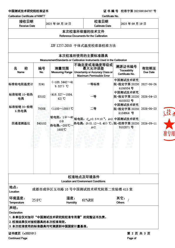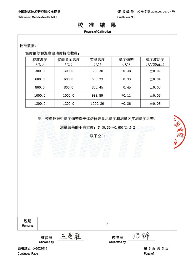 上一條:黑體輻射源(50-1200℃)校準(zhǔn)證書(shū) | 下一條:超低溫面源黑體爐(-40-80℃)校準(zhǔn)證書(shū) |