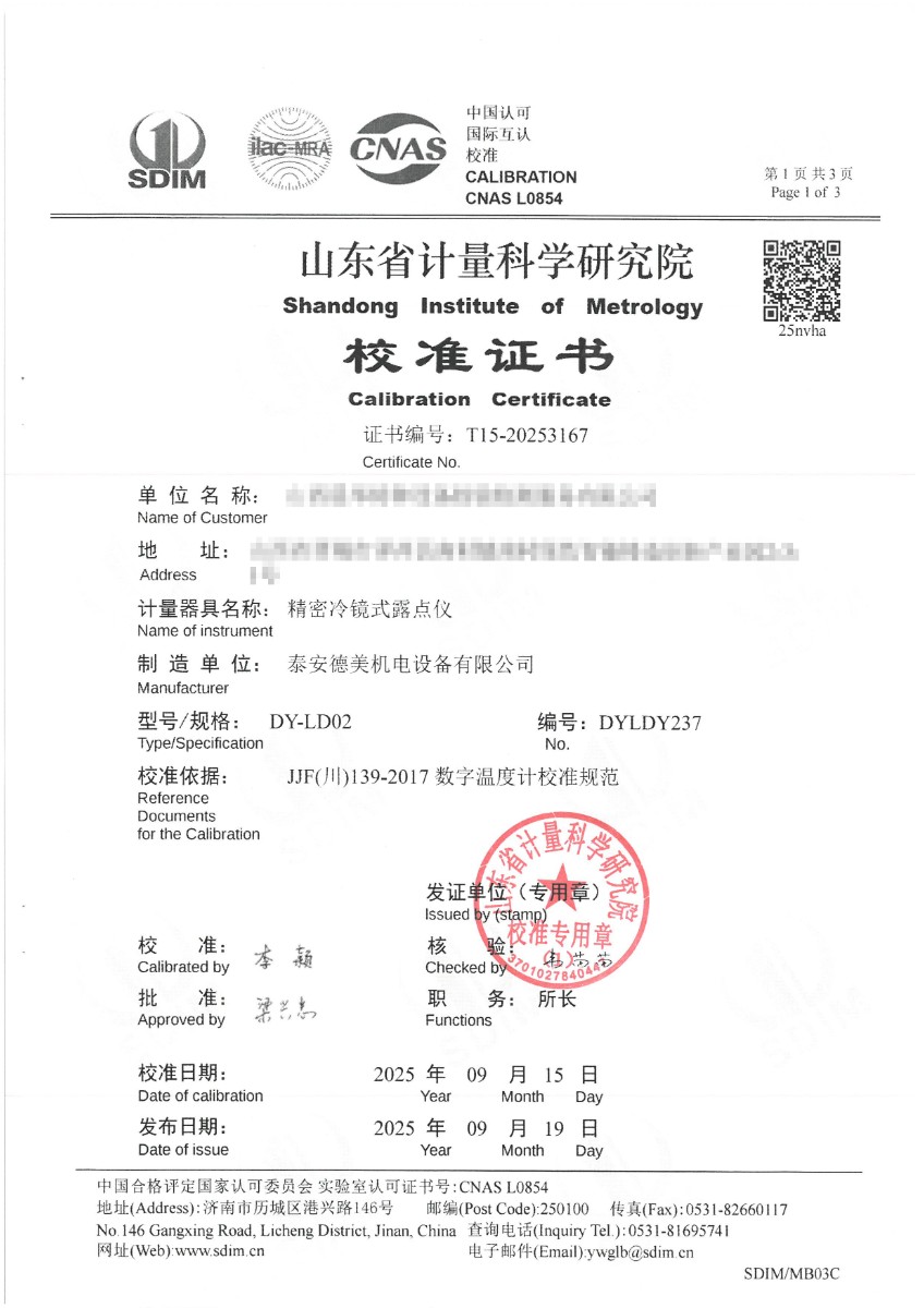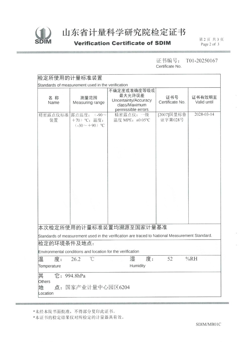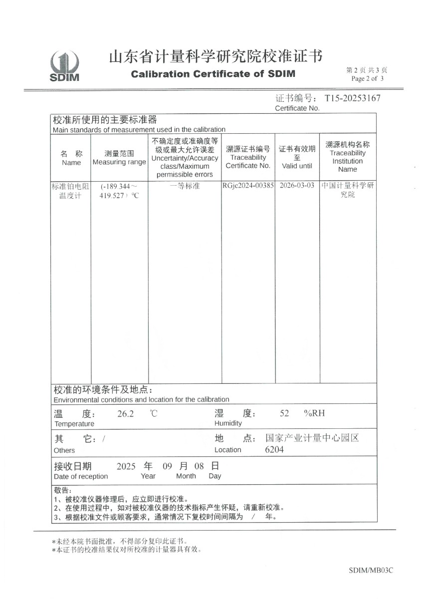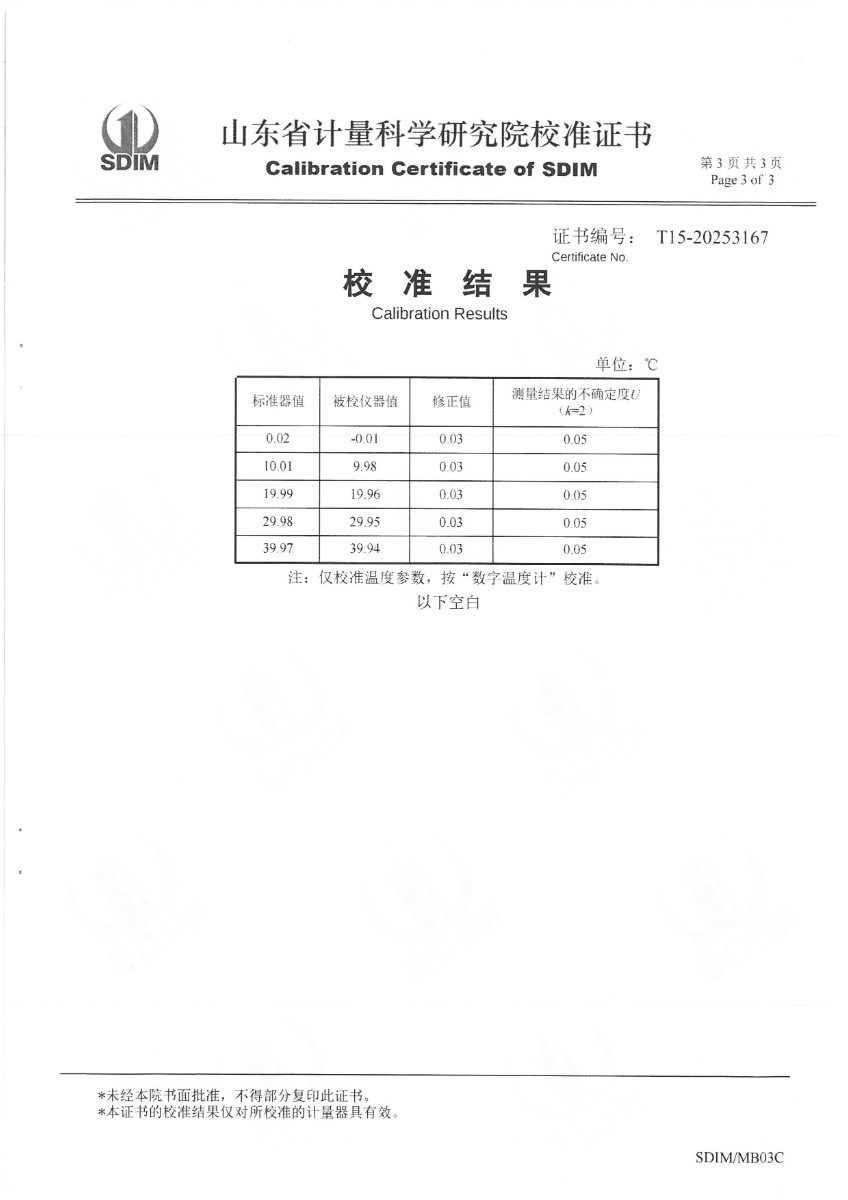 上一條:高精度數(shù)字溫度計(jì)(-20-100℃)校準(zhǔn)證書(shū) | 下一條:超低溫面源黑體爐(-40-80℃)校準(zhǔn)證書(shū) |