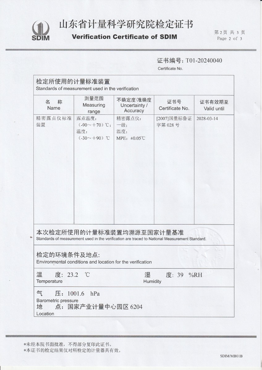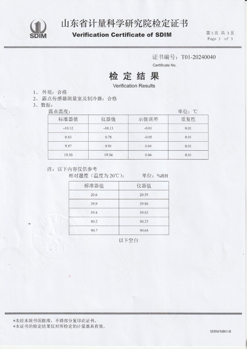 冷鏡式露點儀檢定證書 2024-3-22 本文被閱讀 5609 次