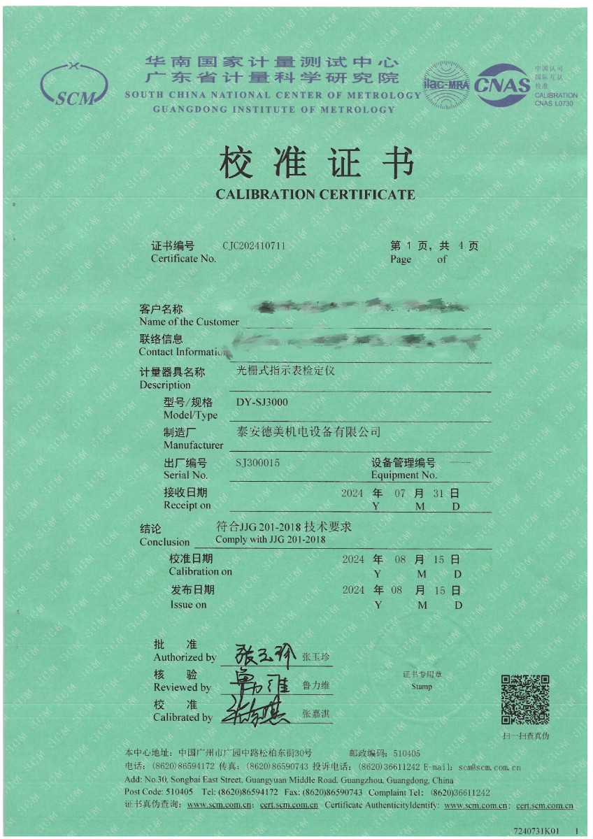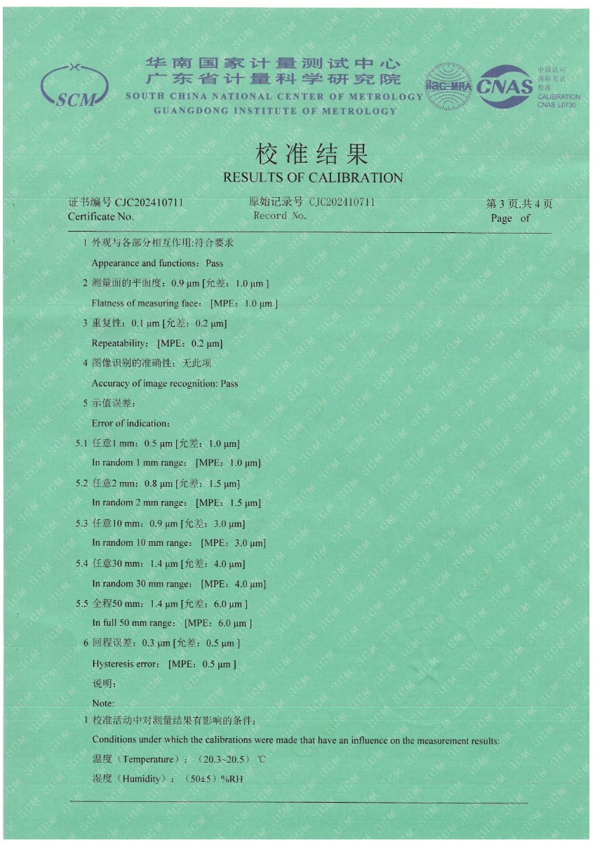 光柵式指示表檢定儀校準證書 2024-8-22 本文被閱讀 6687 次