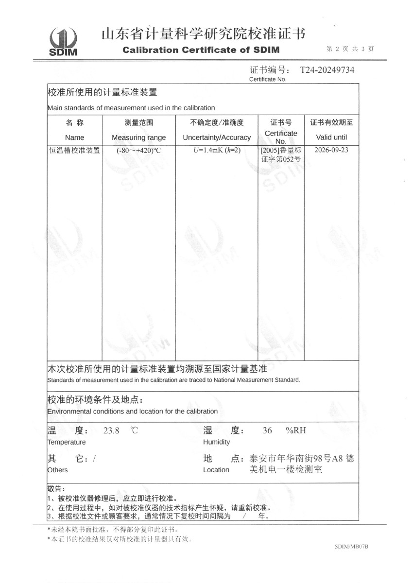 高精度制冷恒溫槽(-10~95℃)校準(zhǔn)證書 2024-9-25 本文被閱讀 7579 次