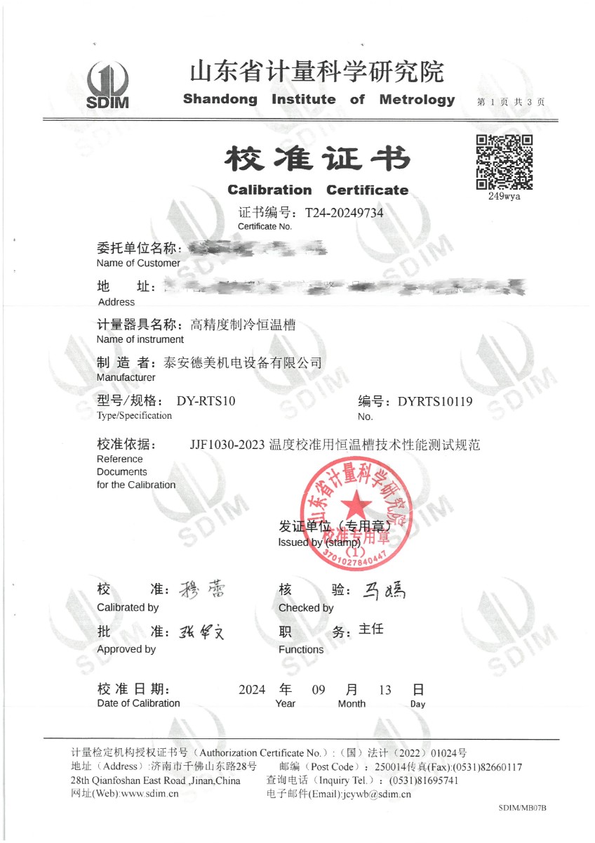 高精度制冷恒溫槽(-10~95℃)校準(zhǔn)證書