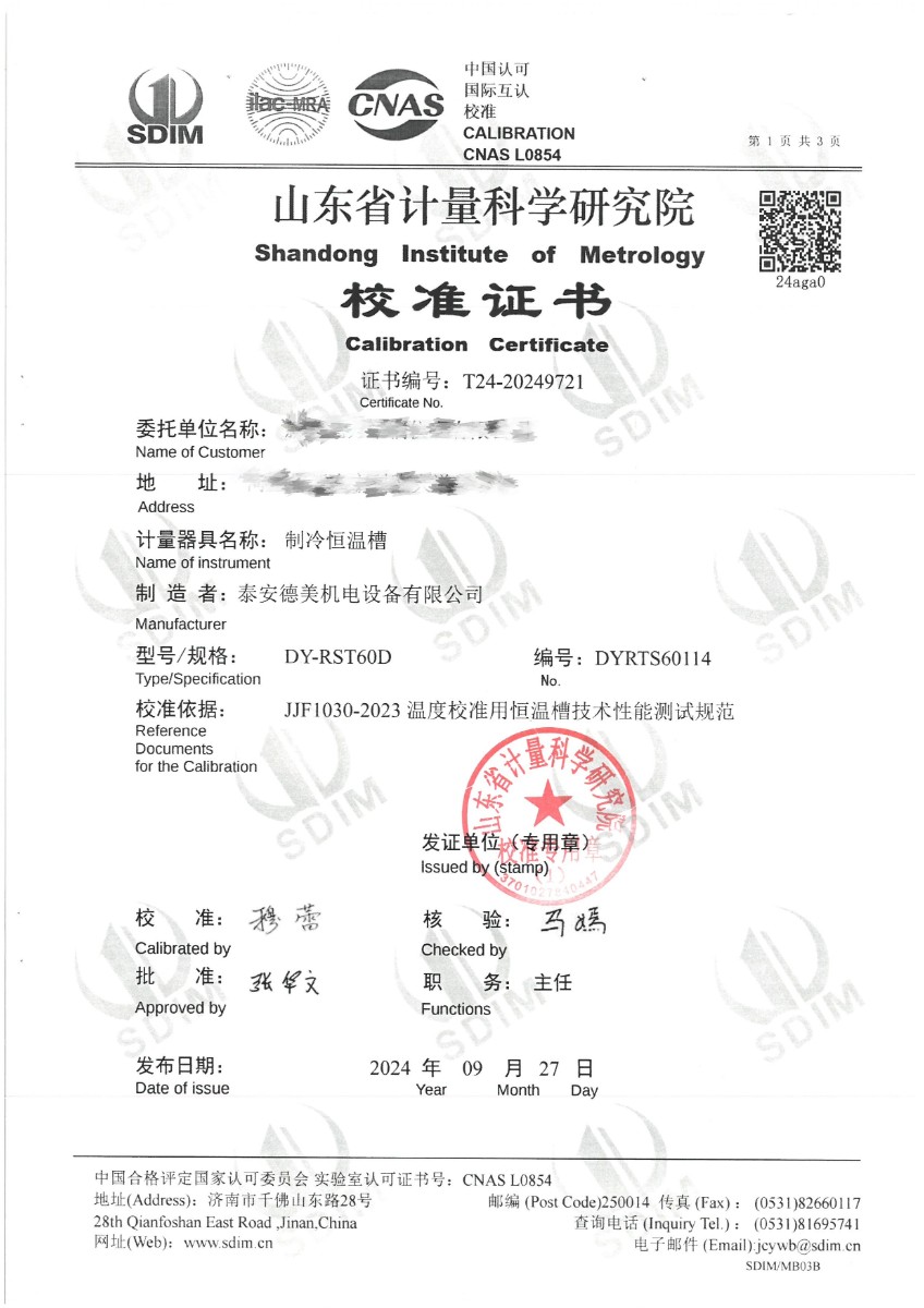 上一條:DY-YC-550高精度恒溫鹽槽(160℃~550(600℃)) | 下一條:超低溫面源黑體爐(-40-80℃)校準(zhǔn)證書(shū) |