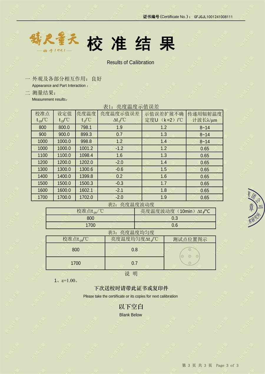 上一條:K分度熱電偶校準(zhǔn)證書 | 下一條:超低溫面源黑體爐(-40-80℃)校準(zhǔn)證書 |
