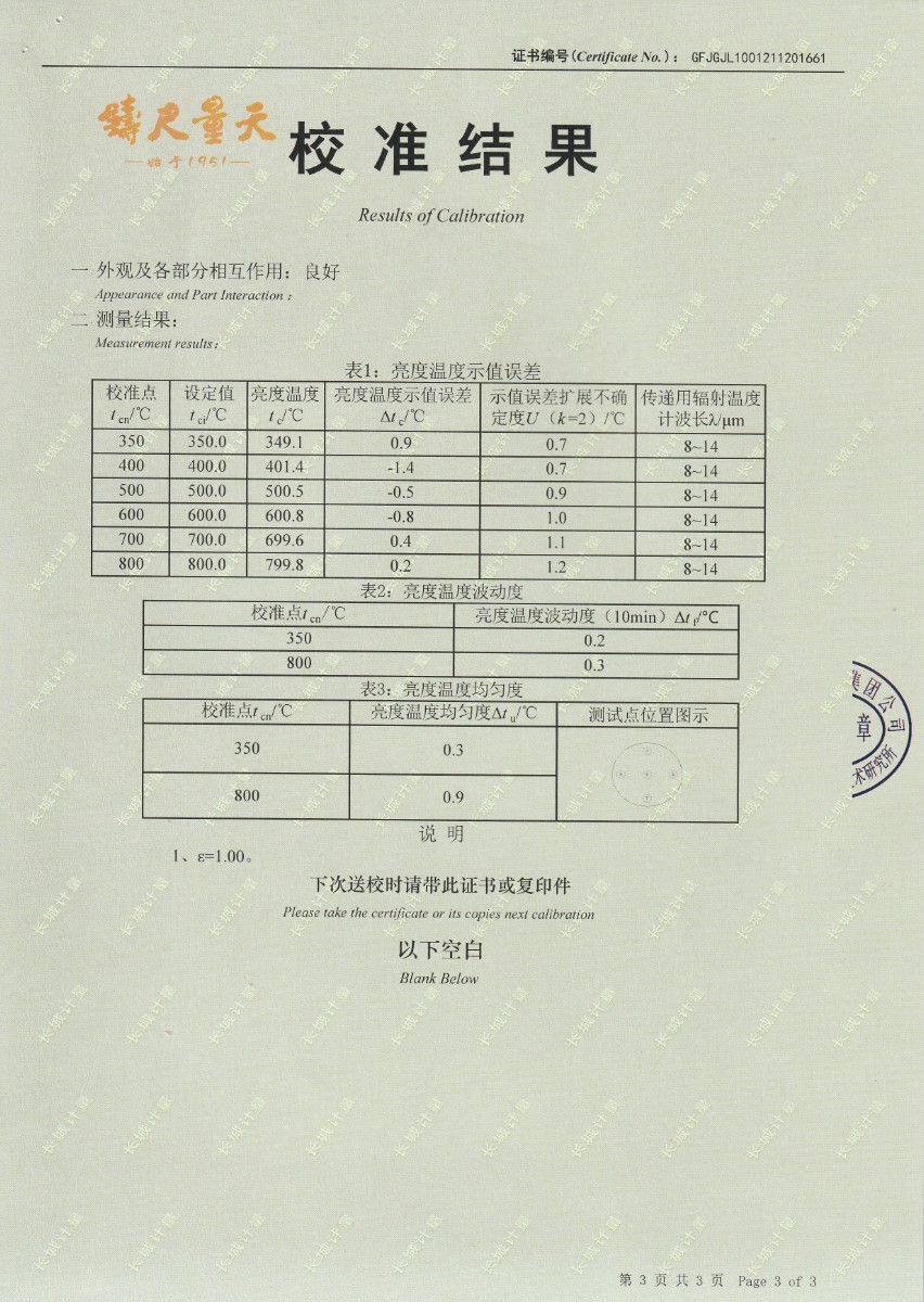 | 上一條:南京理工大學(xué)-黑體輻射源校準(zhǔn)證書300℃ | 下一條:便攜式干體爐(-30-150℃)校準(zhǔn)證書 |