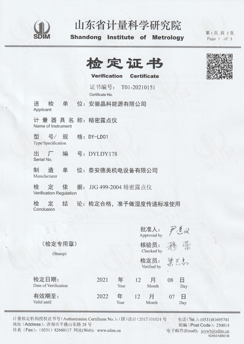 安徽晶科能源有限公司-精密露點儀(濕度) 2021-12-14 本文被閱讀 13684 次