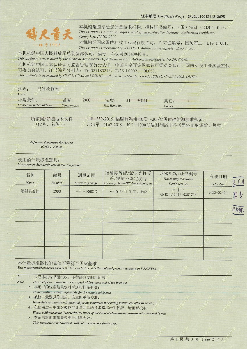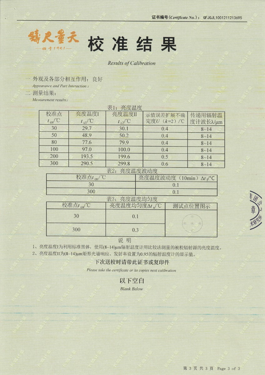 上一條:晶科能源(海寧)有限公司-溫濕度檢定箱下一條:超低溫面源黑體爐(-40-80℃)校準(zhǔn)證書(shū)
