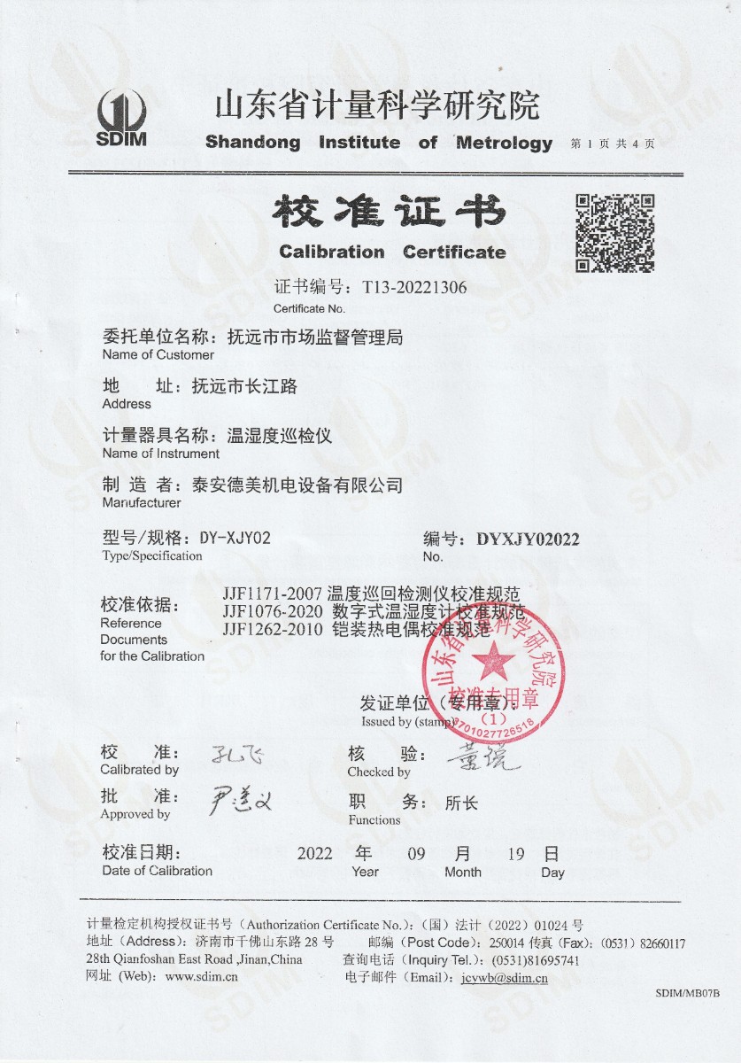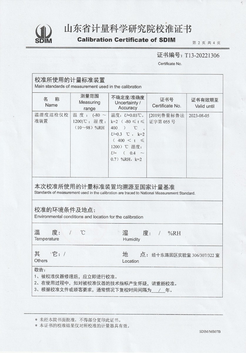 上一條:晶科能源(肥東)有限公司-冷鏡式露點儀校準證書下一條:超低溫面源黑體爐(-40-80℃)校準證書