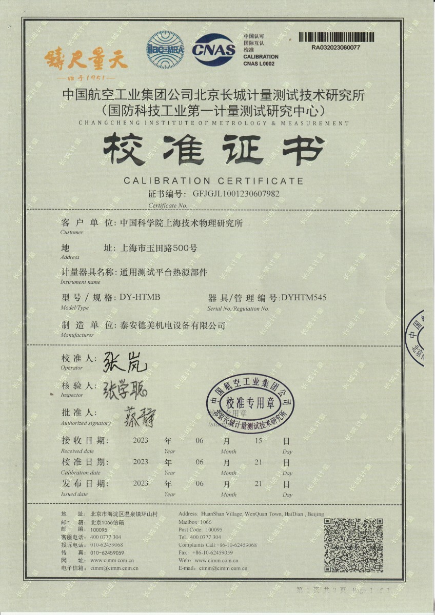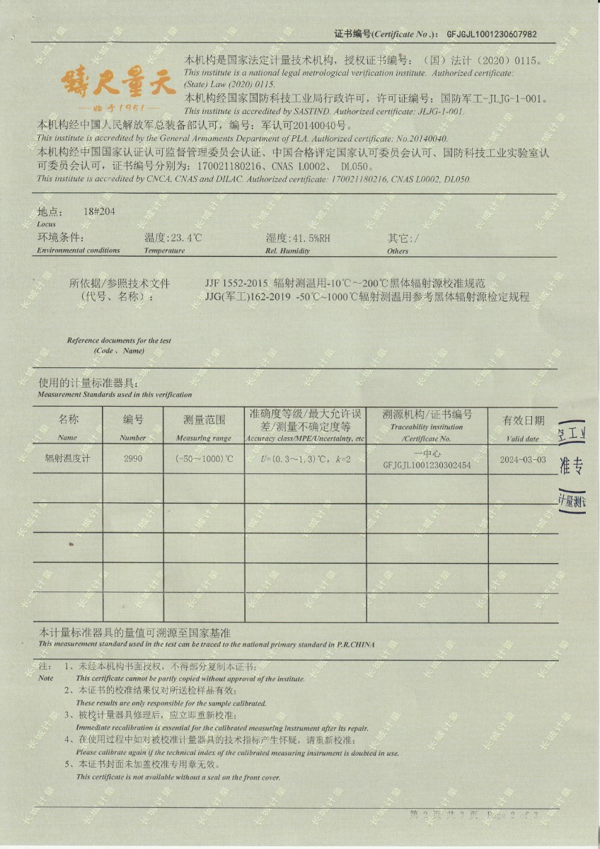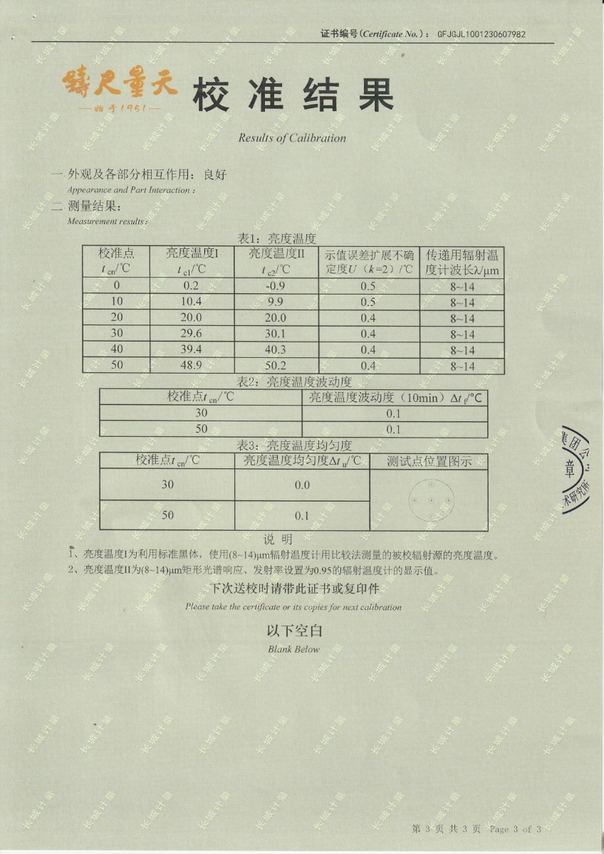 上一條:深圳村田科技有限公司-溫濕度檢定箱 | 下一條:超低溫面源黑體爐(-40-80℃)校準(zhǔn)證書 |