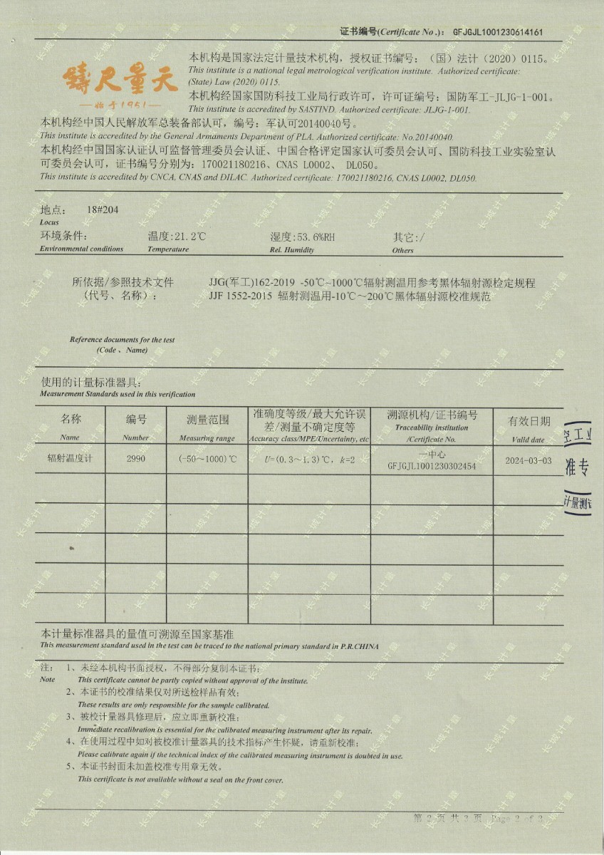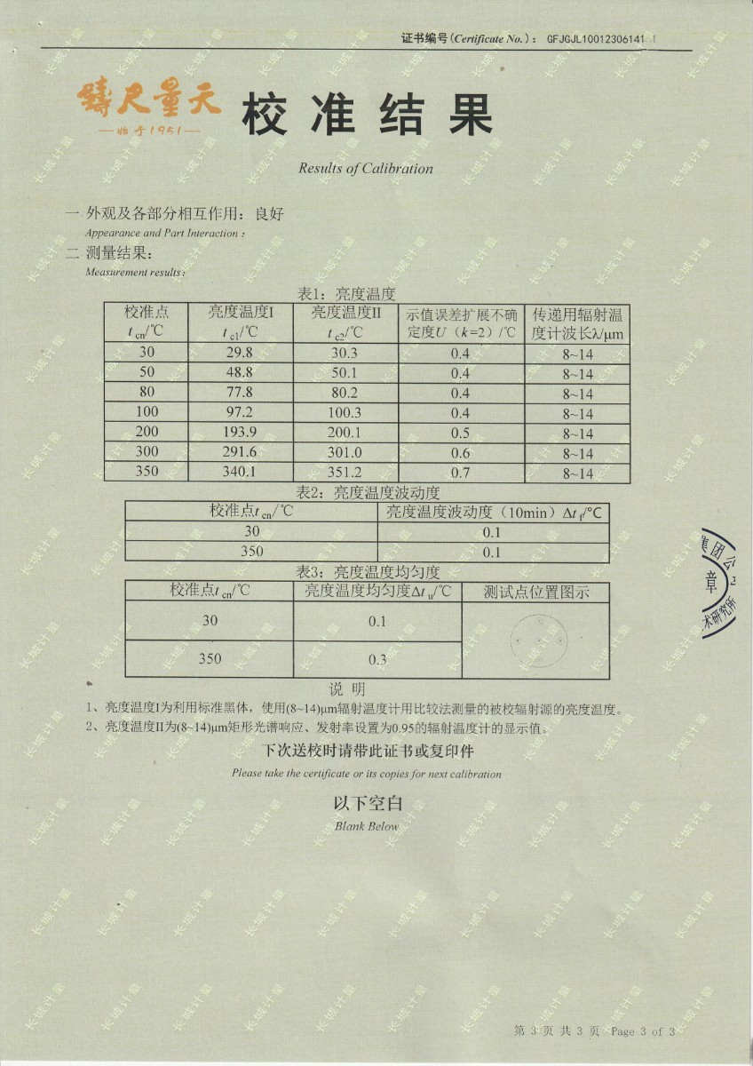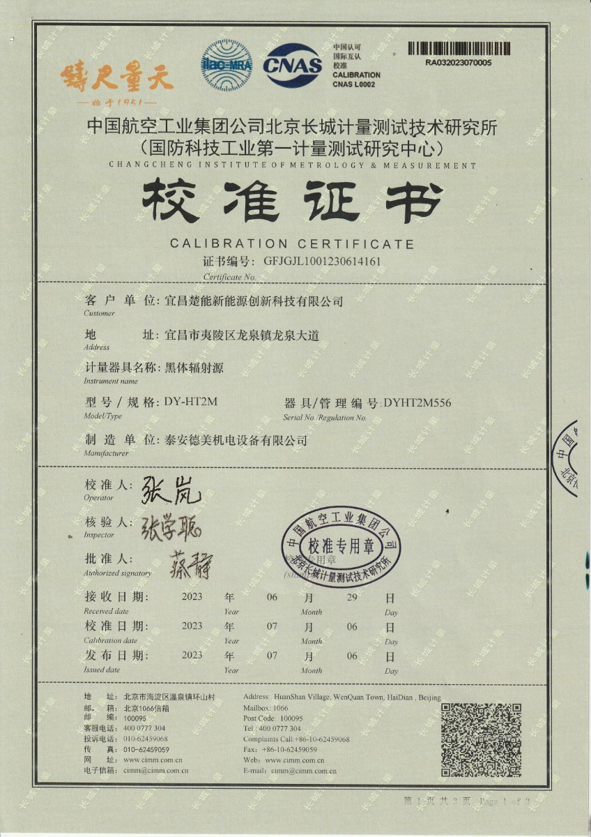 上一條:孝感楚能新能源創(chuàng)新科技有限公司-黑體輻射源 | 下一條:超低溫面源黑體爐(-40-80℃)校準證書 |