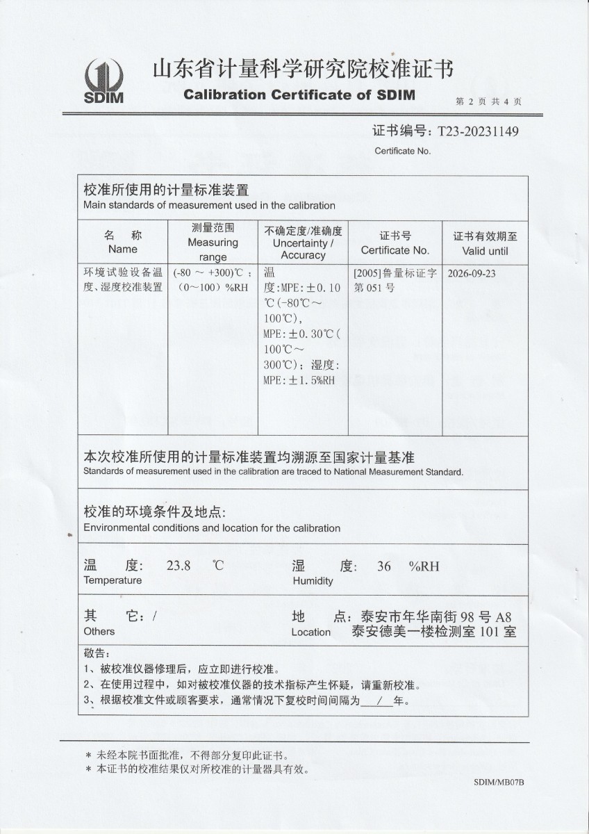 上一條:鉑熱電偶S23-7081檢定證書下一條:超低溫面源黑體爐(-40-80℃)校準證書
