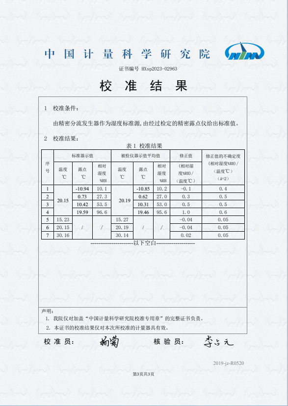 上一條:冷鏡式露點(diǎn)儀校準(zhǔn)證書(shū) | 下一條:超低溫面源黑體爐(-40-80℃)校準(zhǔn)證書(shū) |