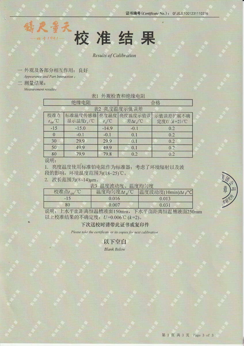 上一條:黑體輻射源校準(zhǔn)證書(shū)DYHT2192 | 下一條:超低溫面源黑體爐(-40-80℃)校準(zhǔn)證書(shū) |