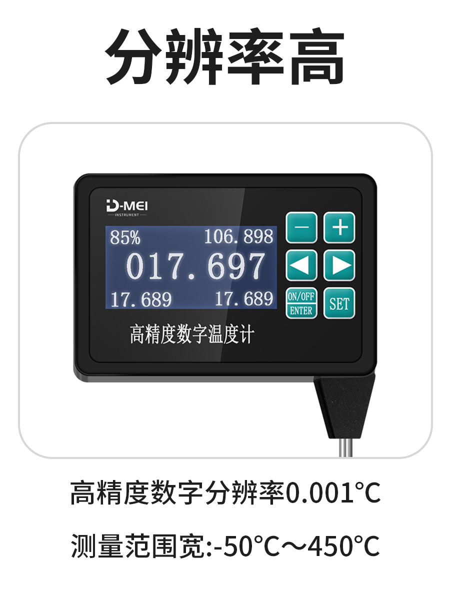 3、高分辨率0.001℃。精度高,滿足《JJF1076-2020數(shù)字式溫度計校準(zhǔn)規(guī)范》,準(zhǔn)確度優(yōu)于±0.05℃