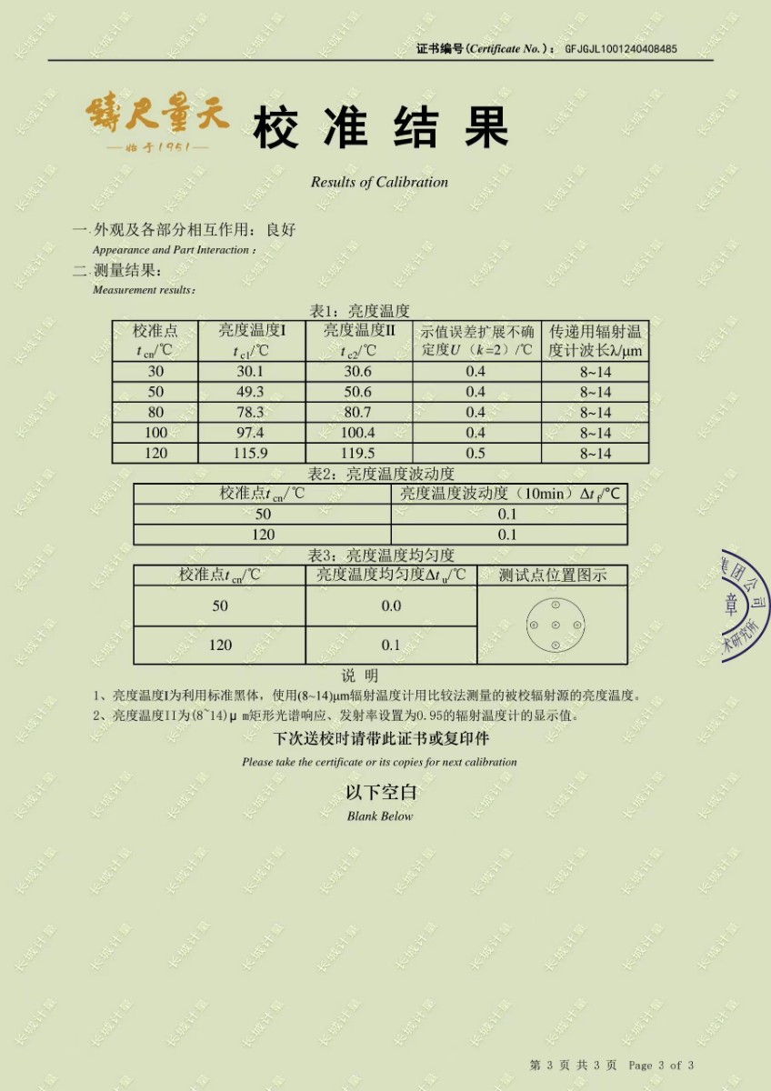 小尺寸高精度中溫黑體校準證書 2024-4-24 本文被閱讀 6938 次