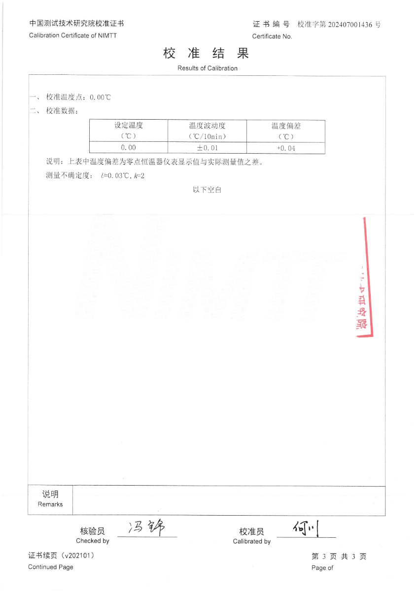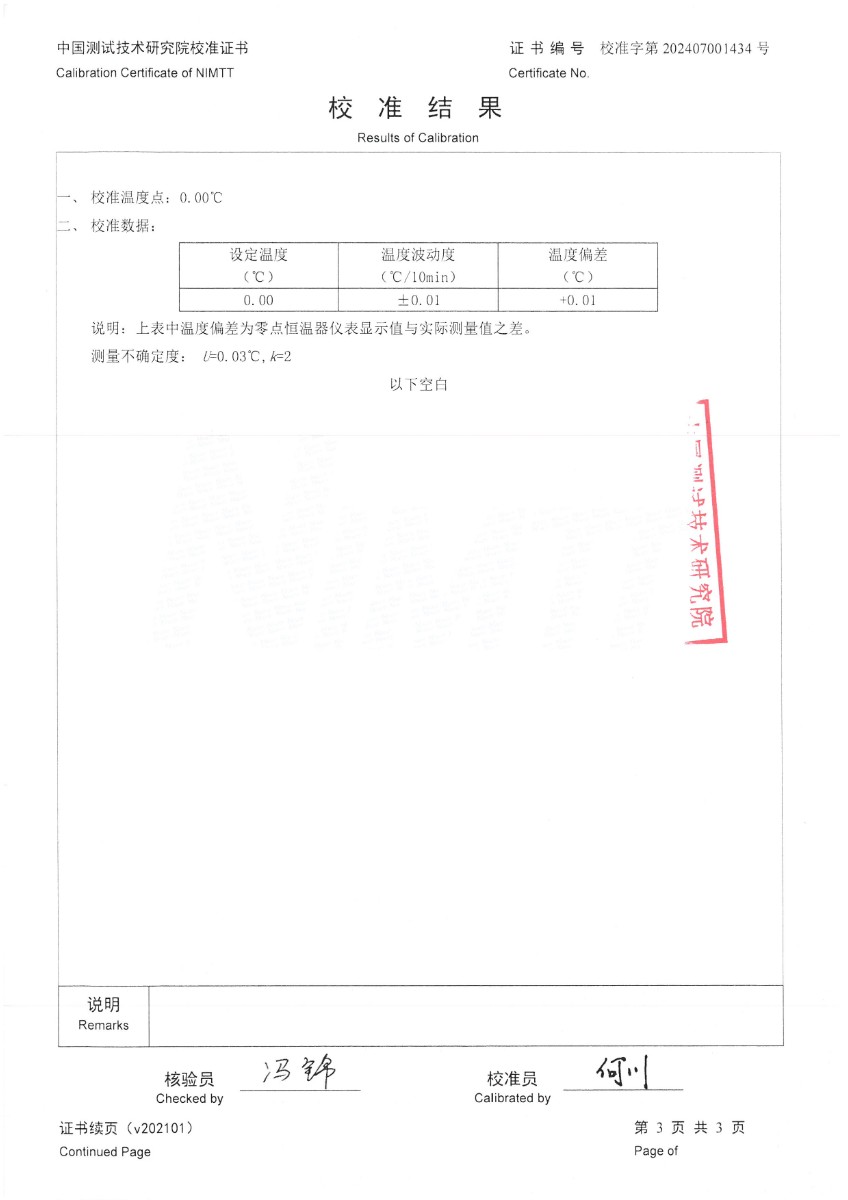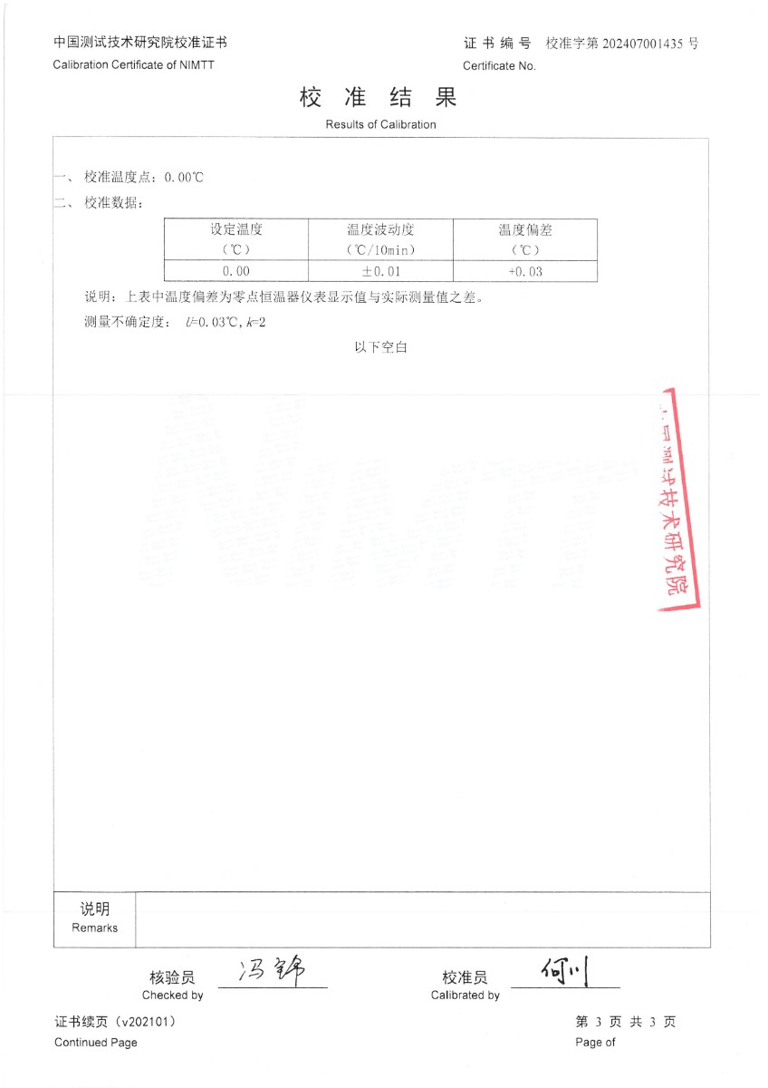 零點恒溫器校準證書 2024-7-19 本文被閱讀 6466 次