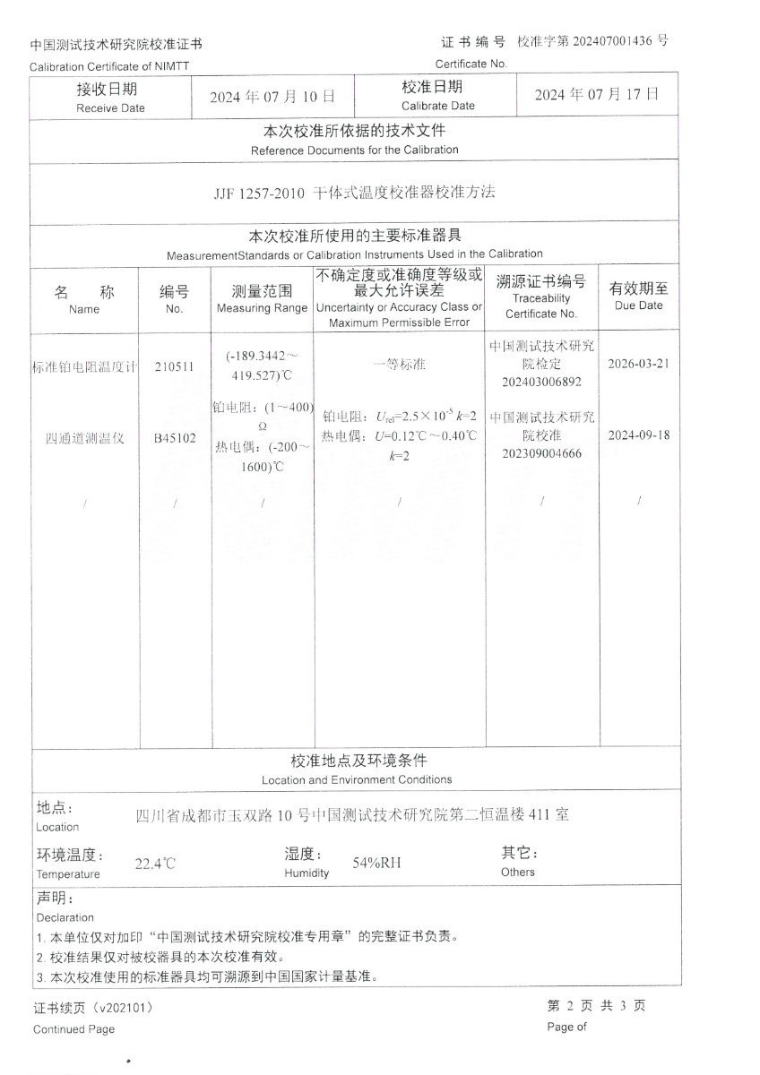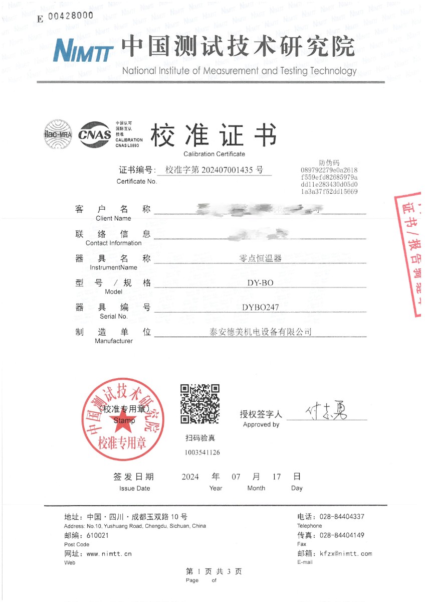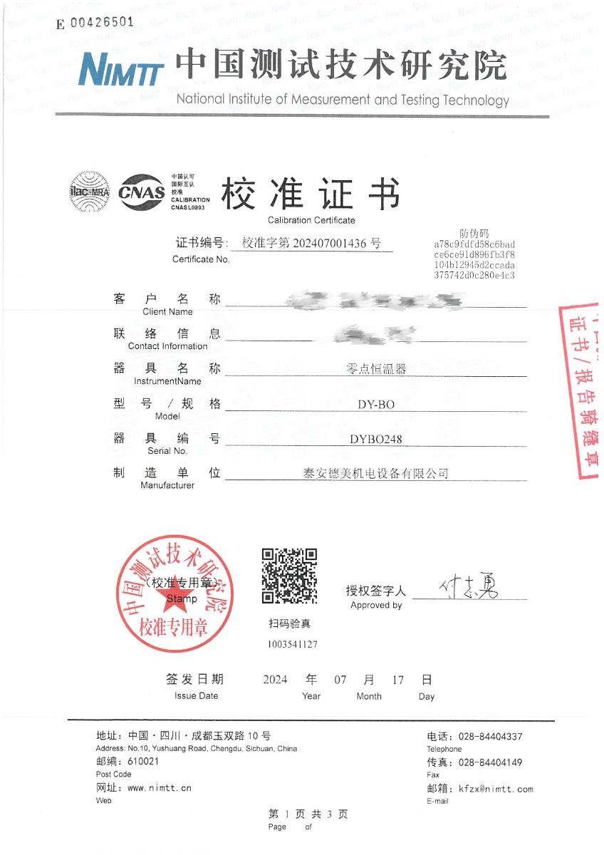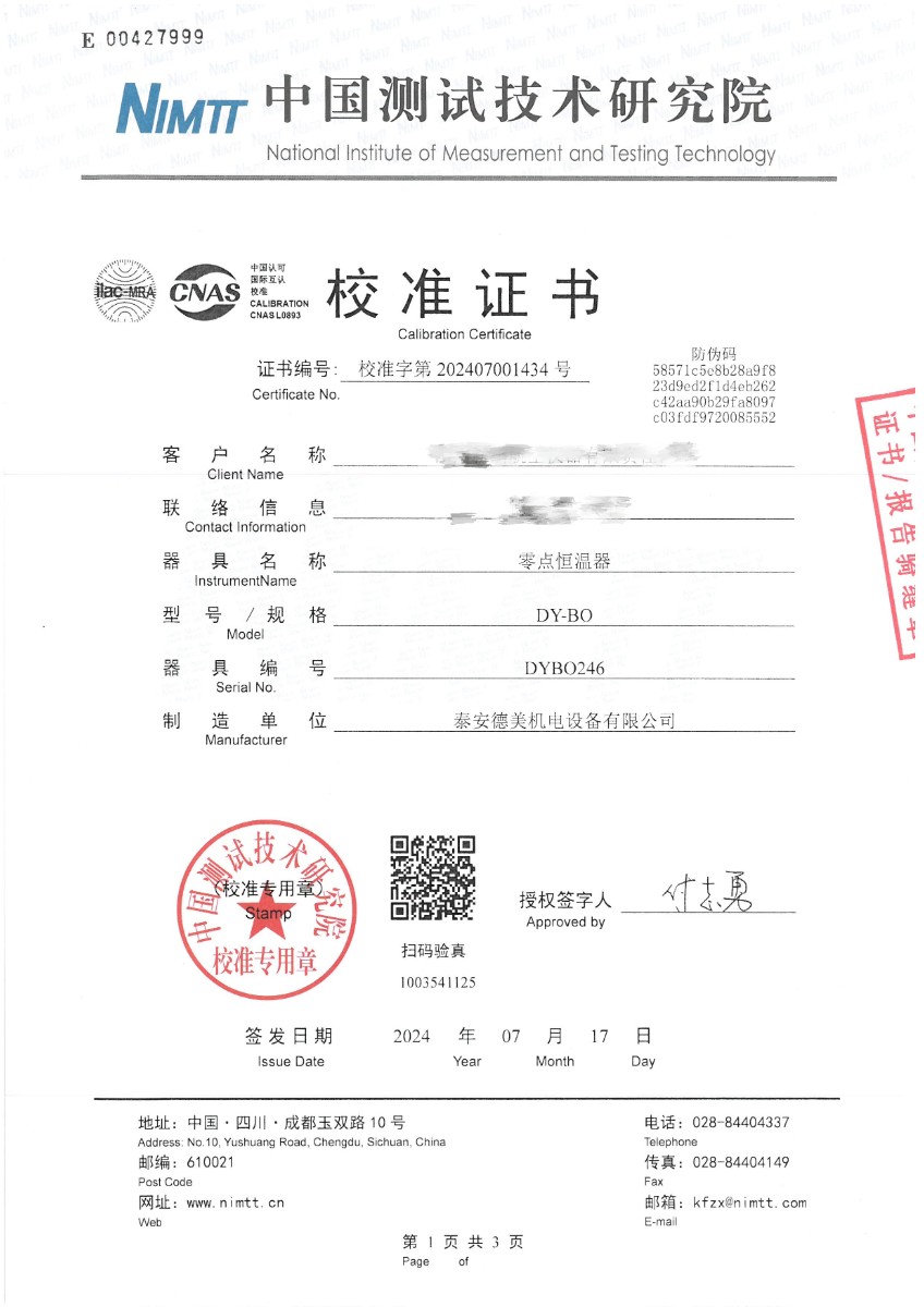 零點恒溫器校準證書 2024-7-19 本文被閱讀 6466 次