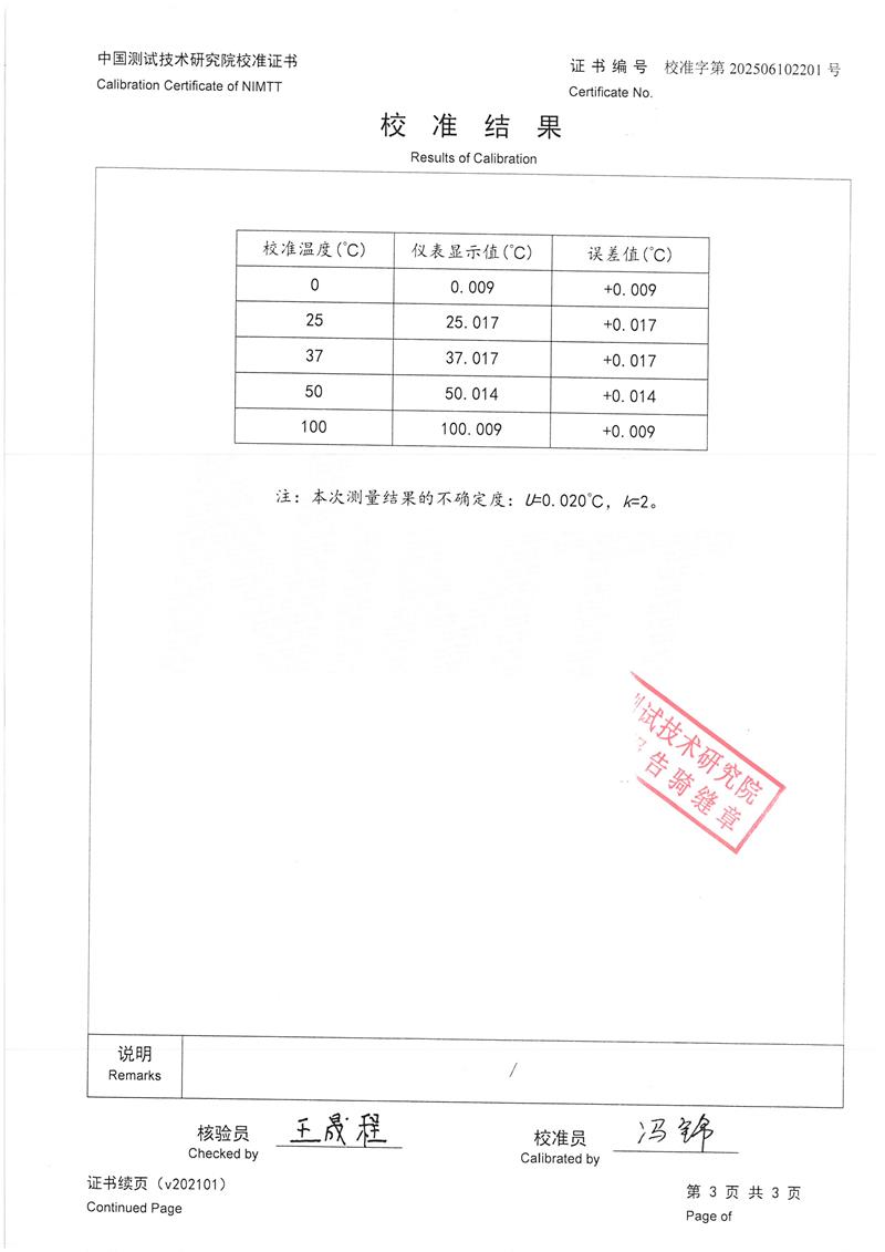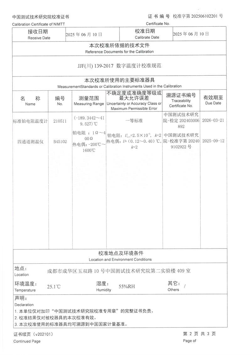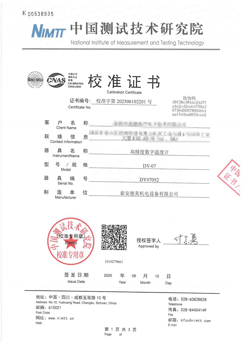數(shù)字溫度計(jì)(-20~150℃)校準(zhǔn)證書 2025-6-13 本文被閱讀 2787 次