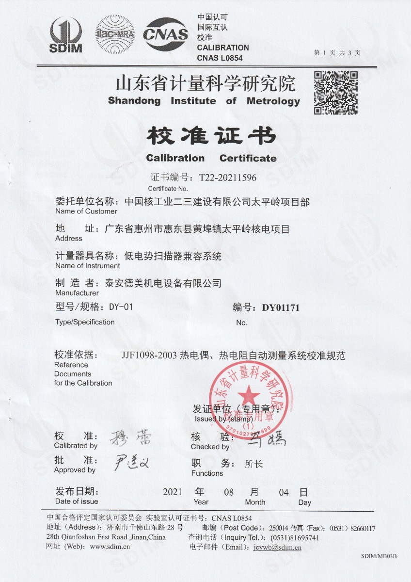 上一條:DY-HTM面源黑體爐,輻射面100mm(-20℃~600℃) | 下一條:便攜式干體爐(-30-150℃)校準(zhǔn)證書 |