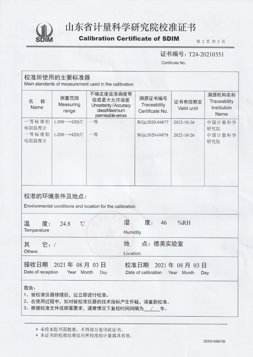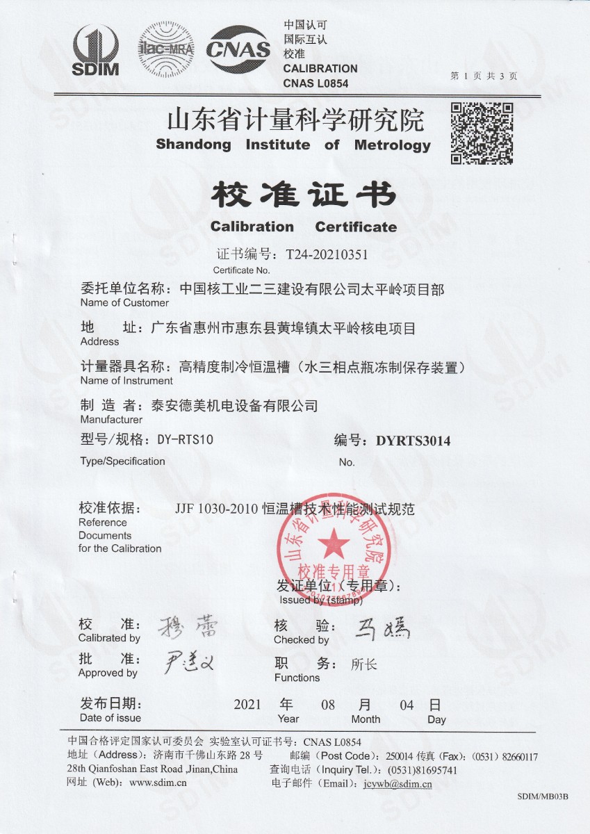 上一條:中國核工業(yè)二三建設(shè)有限公司太平嶺項目部-熱電偶檢定爐 | 下一條:超低溫面源黑體爐(-40-80℃)校準證書 |