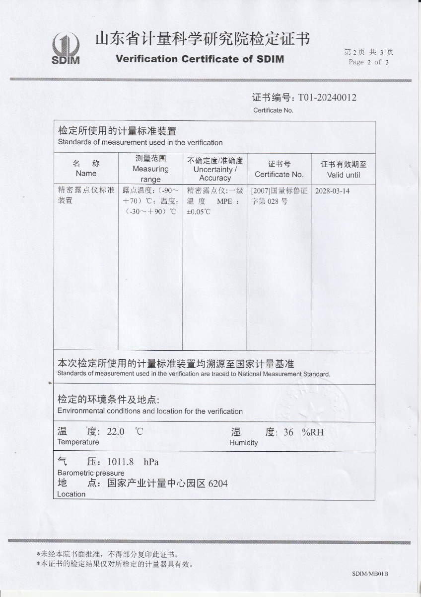 冷鏡式露點(diǎn)儀檢定證書 2024-1-31 本文被閱讀 8275 次