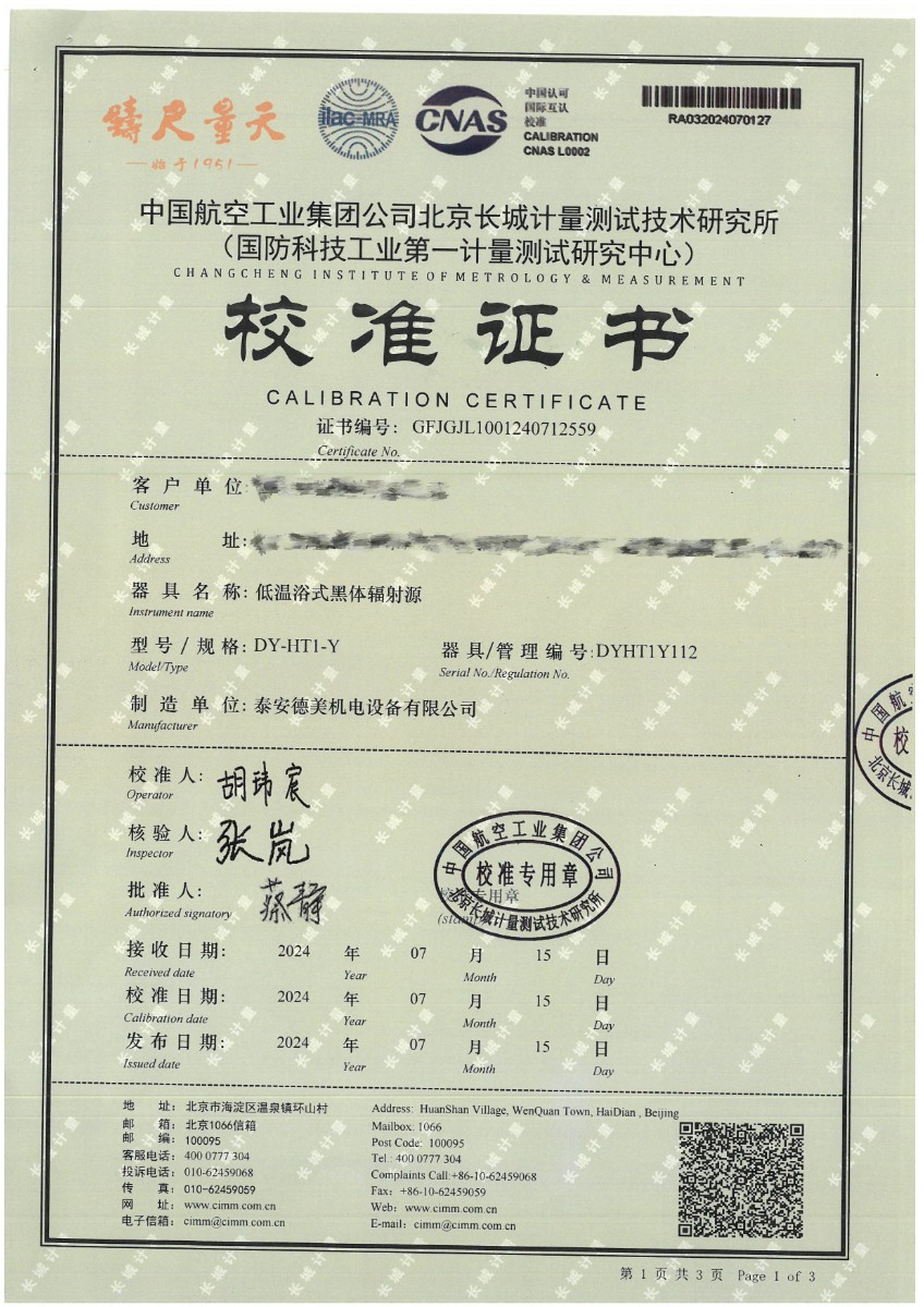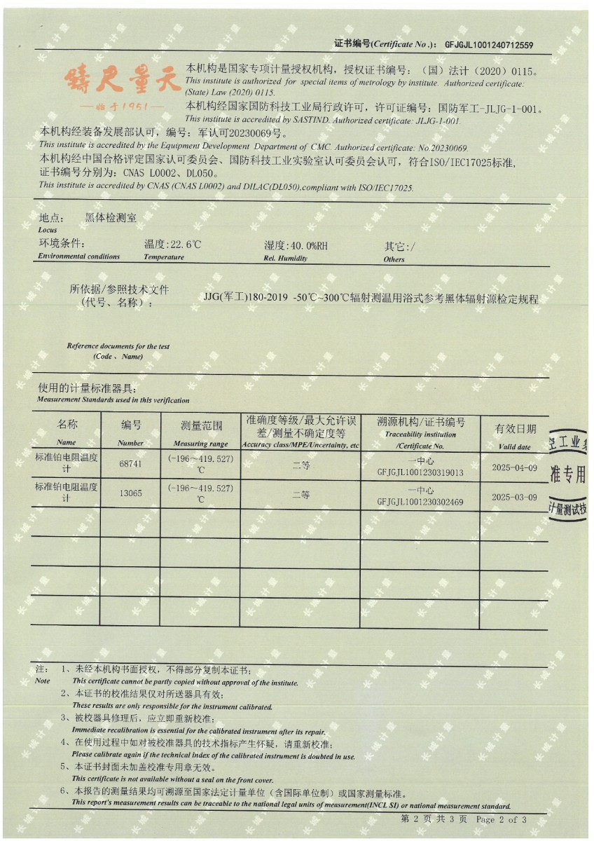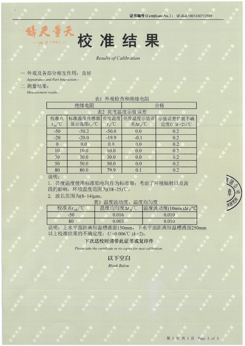 上一條:標(biāo)準(zhǔn)水銀溫度計校準(zhǔn)證書 | 下一條:超低溫面源黑體爐(-40-80℃)校準(zhǔn)證書 |