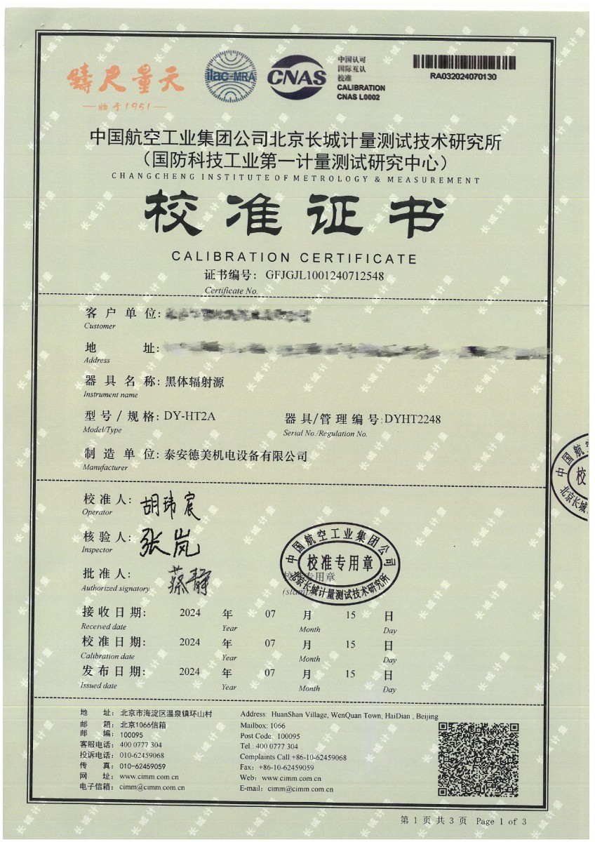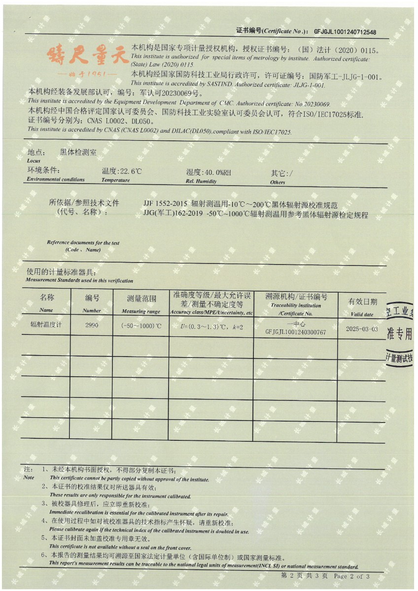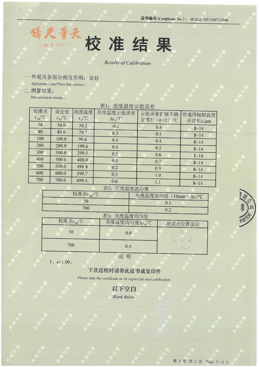黑體(50~700℃)校準證書 2024-7-29 本文被閱讀 9215 次