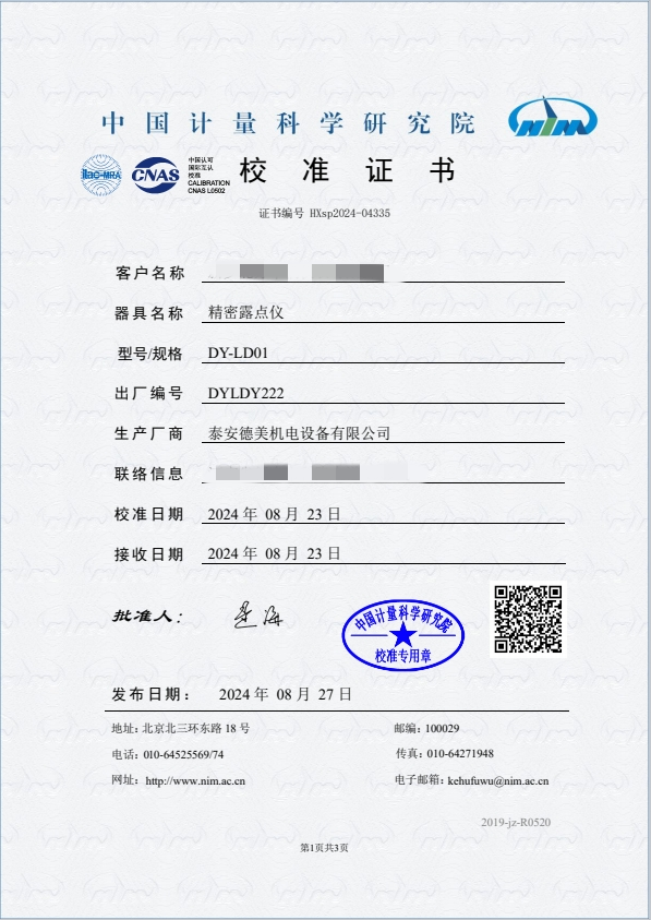 露點(diǎn)儀校準(zhǔn)證書 2024-9-3 本文被閱讀 7050 次