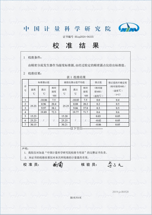 露點(diǎn)儀校準(zhǔn)證書