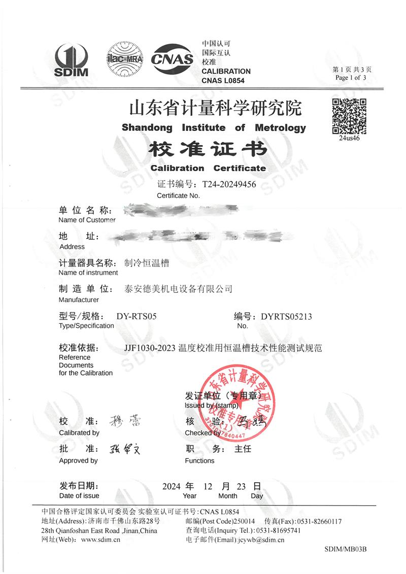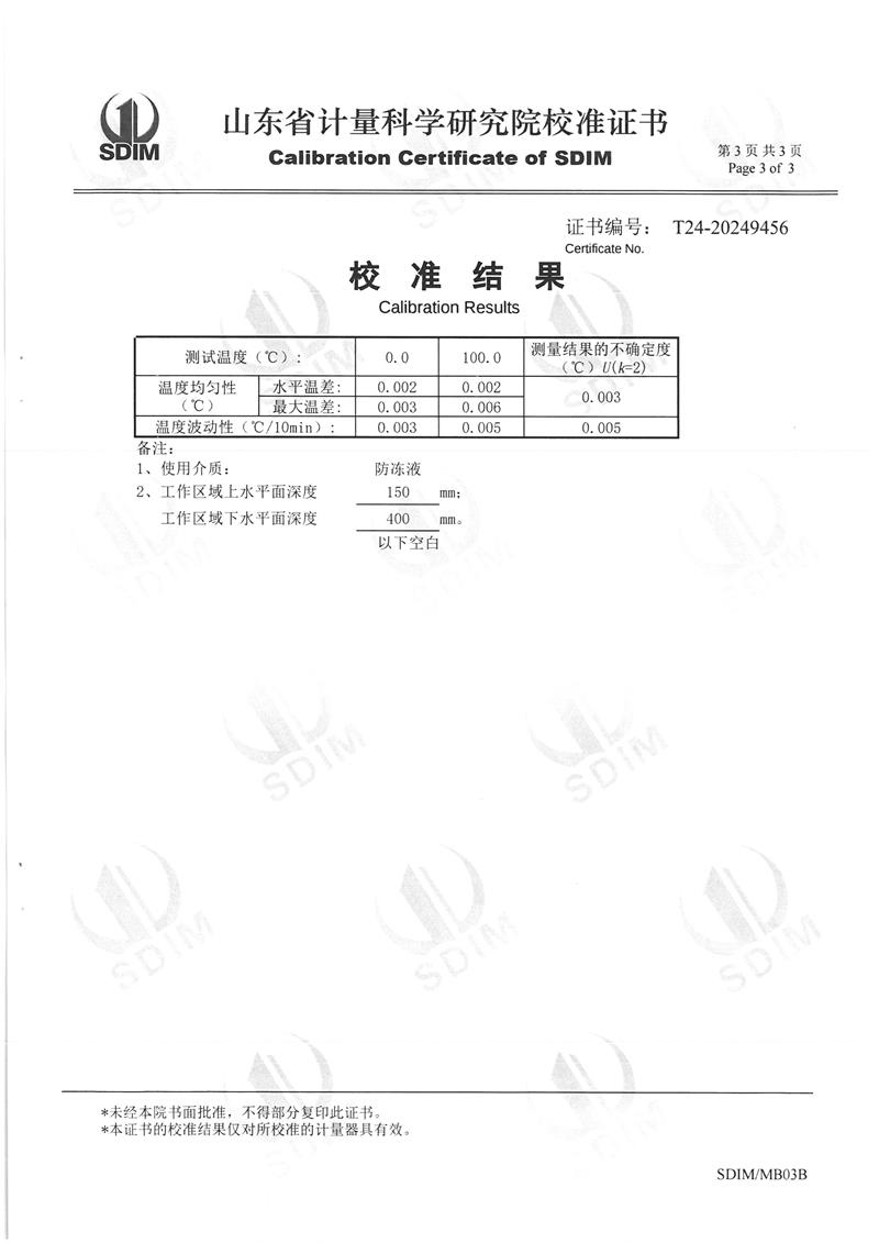 制冷恒溫槽(0~100℃)校準證書 2024-12-26 本文被閱讀 5703 次