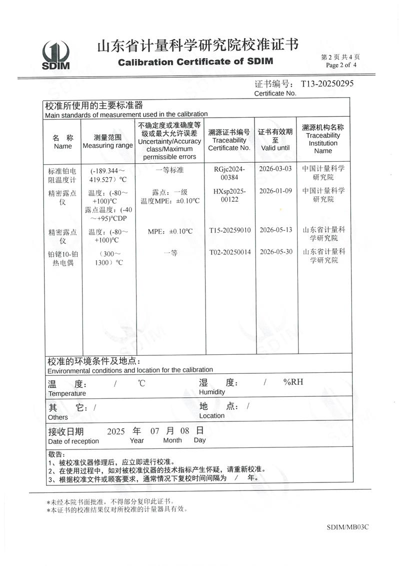 上一條:便攜溫濕度檢定箱(5-50℃)校準證書下一條:超低溫面源黑體爐(-40-80℃)校準證書