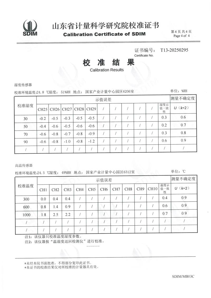 溫濕度巡檢儀校準證書 2025-7-22 本文被閱讀 2232 次