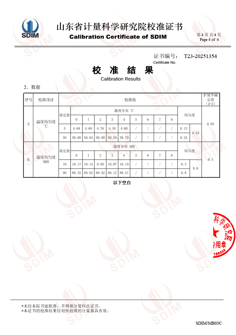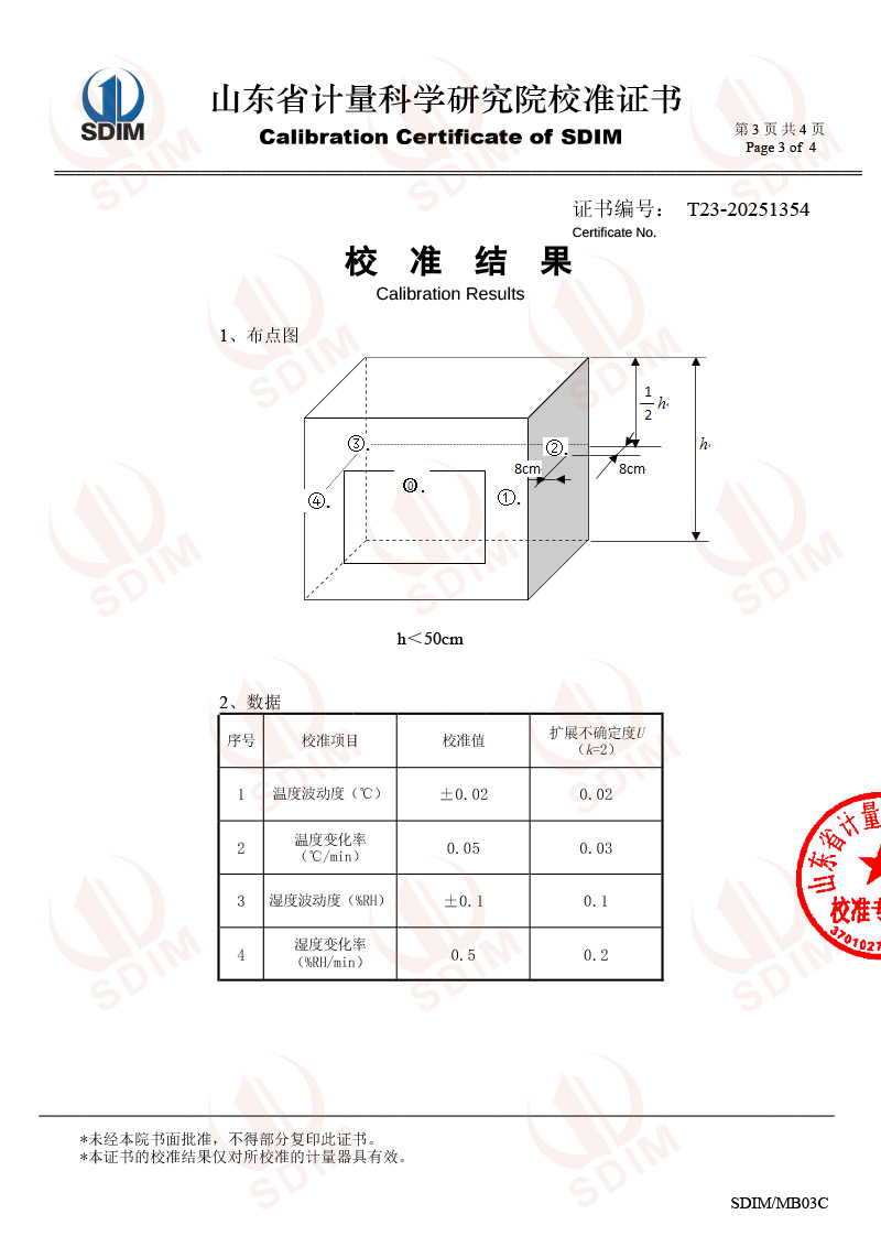便攜溫濕度檢定箱校準(zhǔn)證書