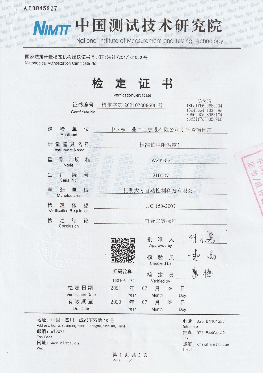 上一條:中國(guó)人民解放軍63672部隊(duì)-黑體輻射源 | 下一條:超低溫面源黑體爐(-40-80℃)校準(zhǔn)證書(shū) |