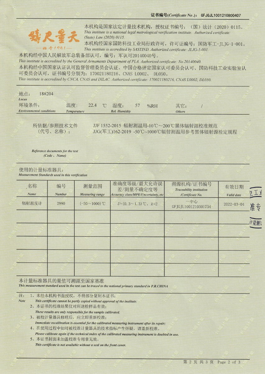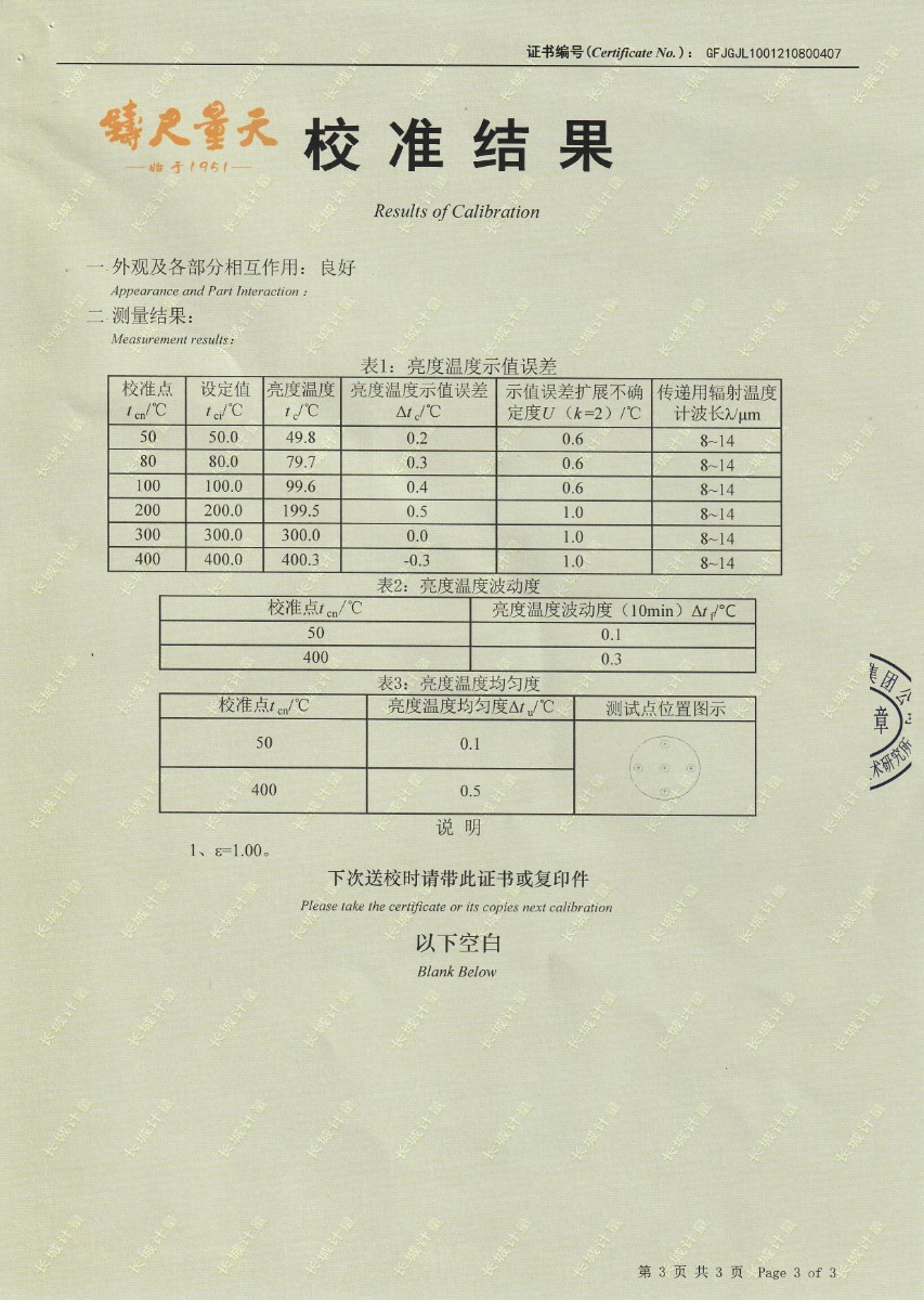 上一條:迪皮埃風(fēng)電葉片揚(yáng)州有限公司-面源黑體輻射源 | 下一條:超低溫面源黑體爐(-40-80℃)校準(zhǔn)證書(shū) |